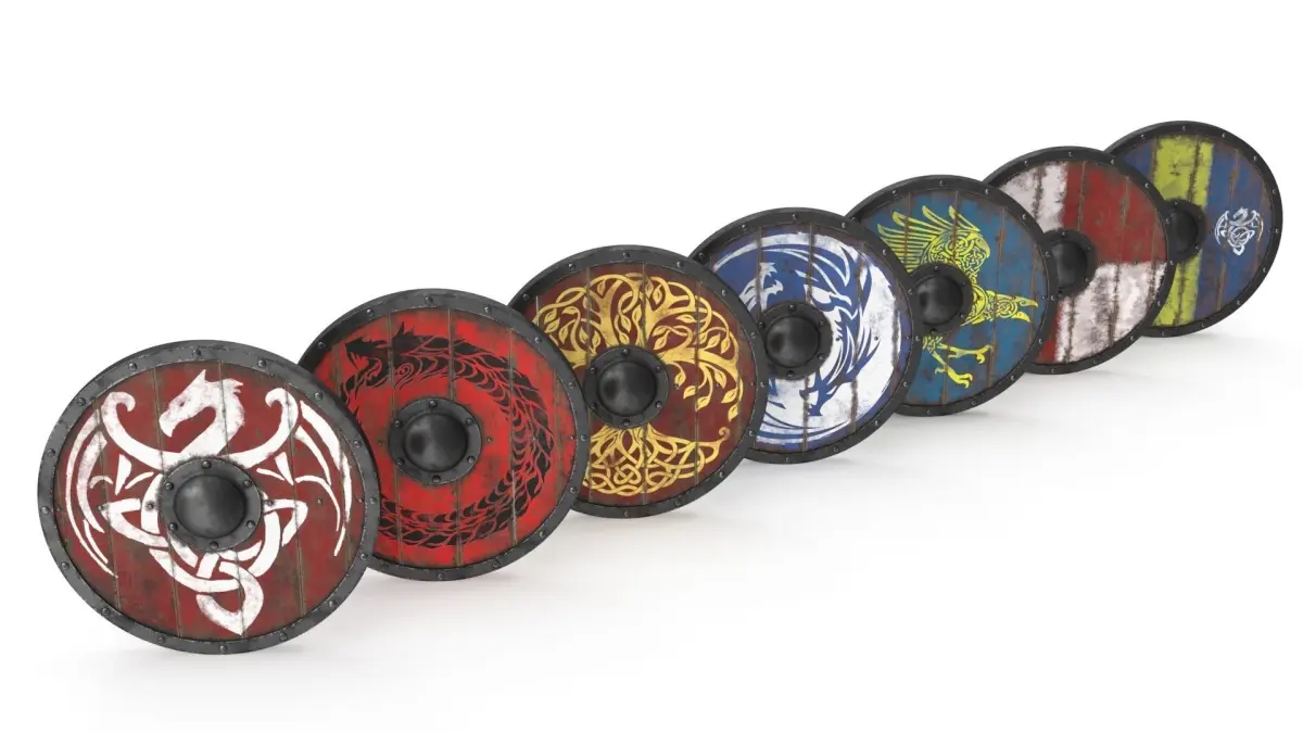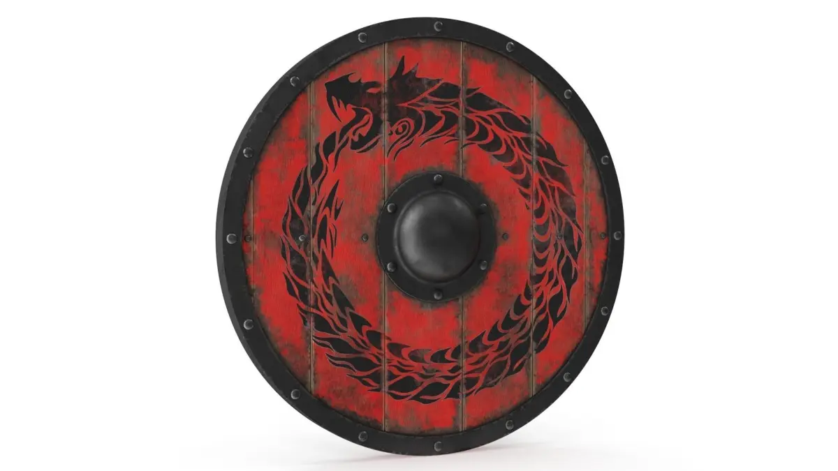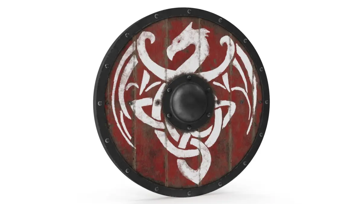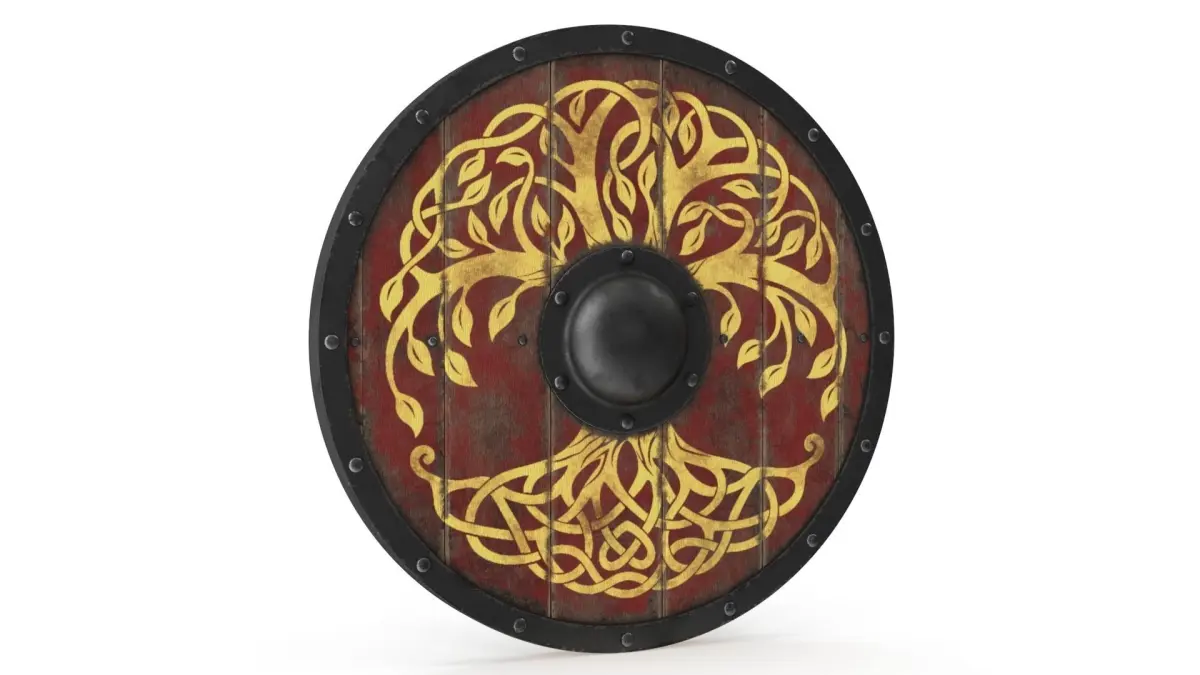 A set of wooden viking shield. Realistic 3D models with different ornament variations.