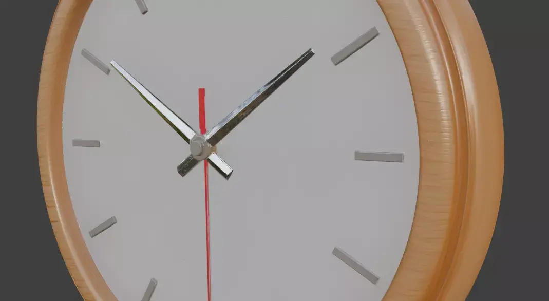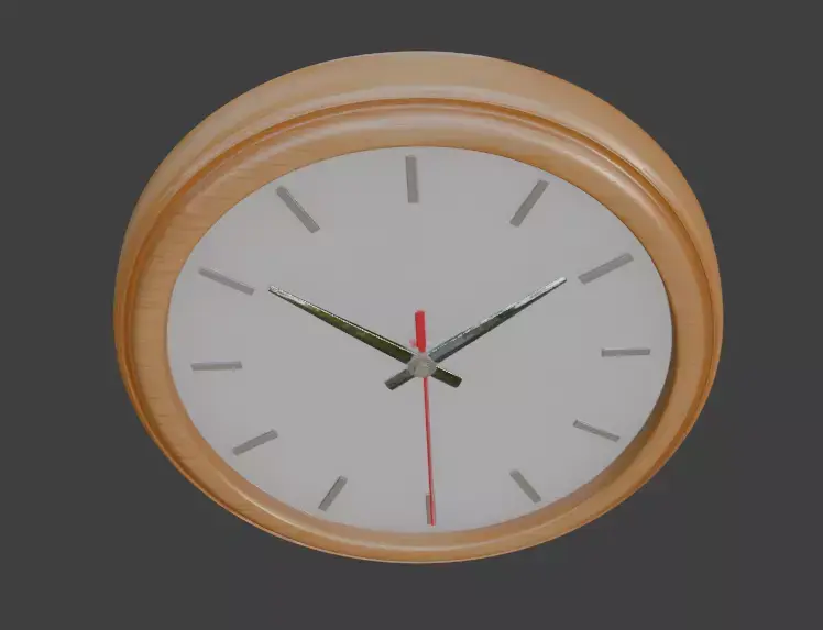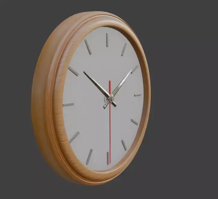 Elegant, modern 3D model of a round wall clock featuring a natural light wood frame, matte white dial, subtle gray hour markers, sleek metallic hands, and a distinctive red second hand. Perfect for Scandinavian interiors, contemporary homes, office scenes, product visualization, or any minimalist decor setup. PBR textured, low-poly optimized, clean topology, ready for games, archviz, and animations.