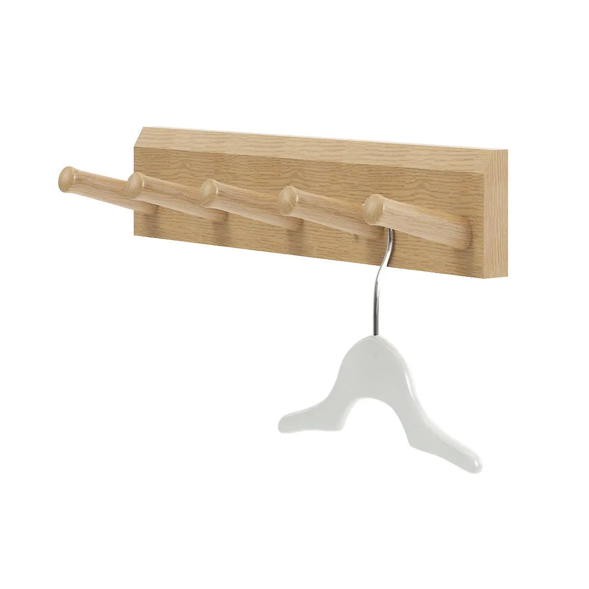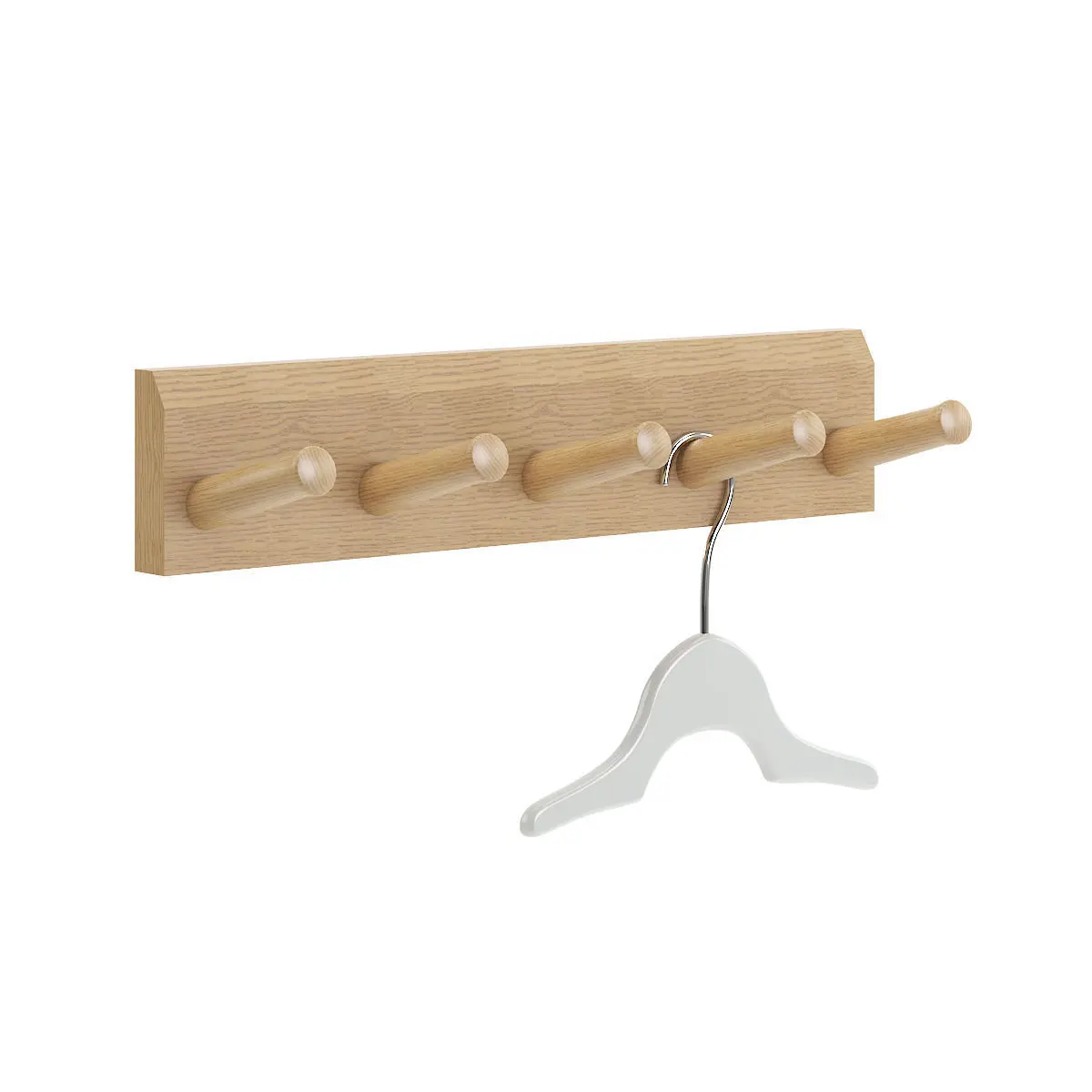 Wooden wall hanger 3d model with one white clothes hanger. Compatible with 3ds max 2010 (V-Ray, Mental Ray, Corona) or higher, Cinema 4D R15 (V-Ray, Advanced Renderer), FBX, OBJ and Unreal Engine.