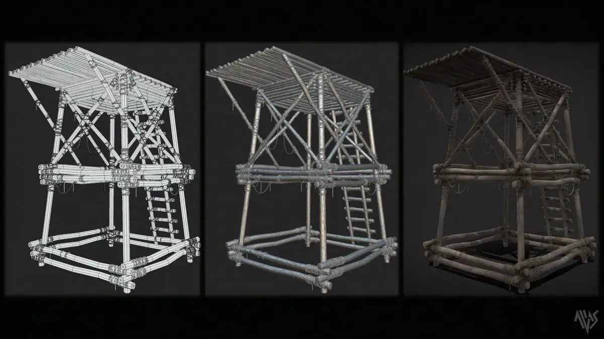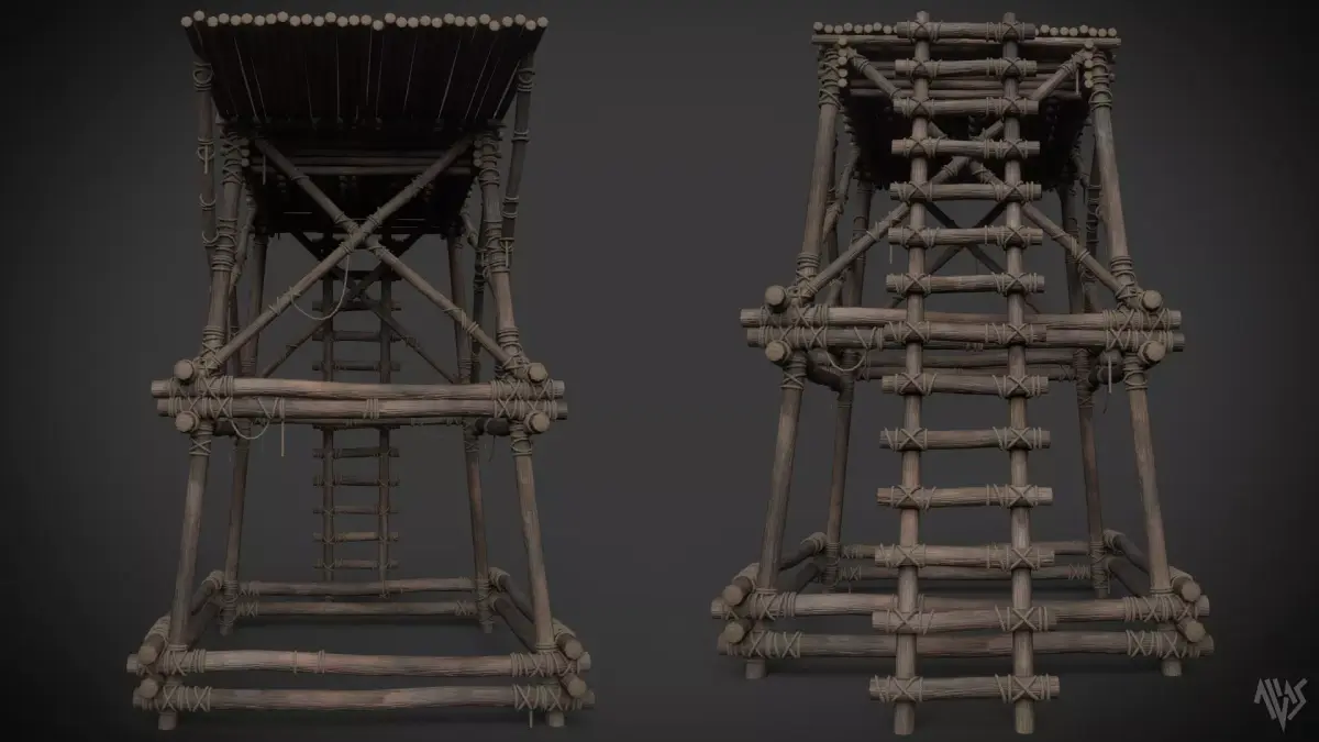 Wooden Watchtower B. Suitable prop for depicting medieval or jungle warfare scene. Modelled in Maya, textured in Substance Painter. This asset is optimized mid poly and gameready with obj and fbx format selections with 1 material set and selections of 4k and 8k png textures included in the additional files with unreal packed textures.