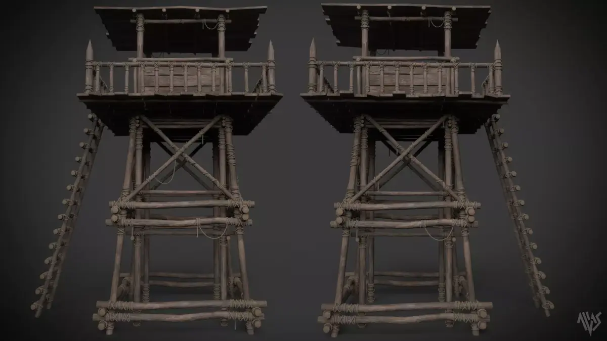 Wooden Watchtower C. Suitable prop for depicting medieval or jungle warfare scene. Modelled in Maya, textured in Substance Painter. This asset is optimized mid poly and gameready with obj and fbx format selections with 1 material set and selections of 4k and 8k png textures included in the additional files with unreal packed textures.