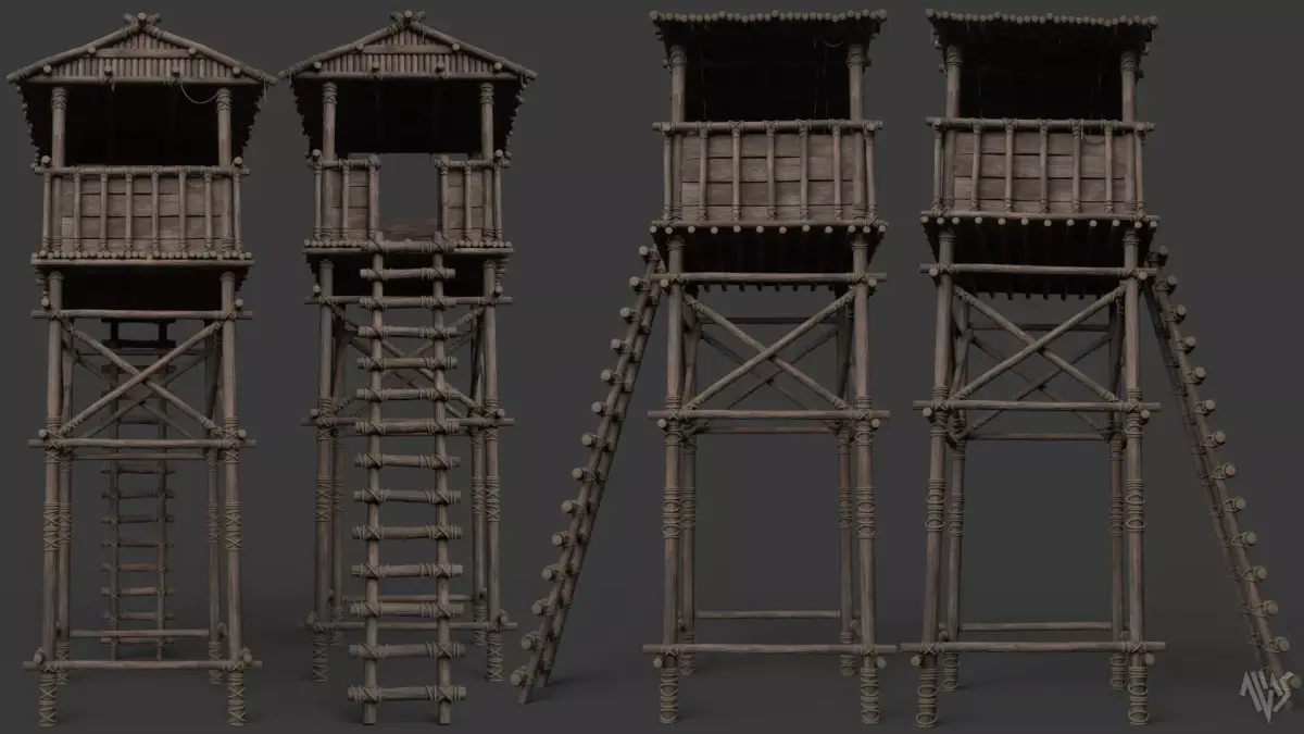 Wooden Watchtower D. Suitable prop for depicting medieval scene. Modelled in Maya, textured in Substance Painter. This asset is optimized mid poly and gameready with obj and fbx format selections with 1 material set and selections of 4k and 8k png textures included in the additional files with unreal packed textures.