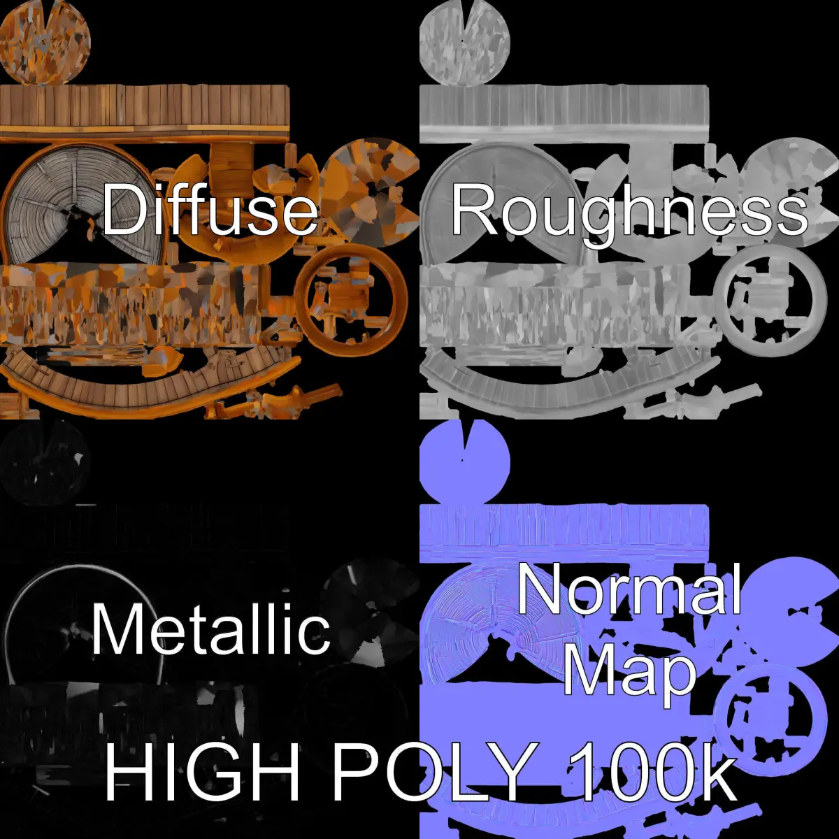 This Wooden Water Tower Model Pack includes models with three levels of detail: low-poly (1000 triangles) for mobile, middle-poly (10,000 triangles) for environment use, and high-poly (100,000 triangles) for detailed production rendering. Adaptable for use in 3ds Max, Maya, Cinema 4D, Blender, and compatible with Unity and Unreal game engines, these models are ideal for industrial scenes, historical simulations, or architectural visualizations. Featuring PBR textures, Diffuse, NormalMap, and reflection/roughness/metallic maps, the models are optimized for modern rendering engines with 4K textures ensuring clarity and detail. The models are fully unwrapped with no overlapping UVs, ensuring efficient workflow integration. Enhance your project with this versatile and realistic asset. The first image is the reference used for creating the 3D model. It is important to carefully evaluate the quality of the model by examining the preview images that display the topology and polygonal mesh. These previews (WIRE and WEB 3D Preview) clearly demonstrate how accurately the model matches the original reference and how well the geometry has been executed. Please like and leave a comment if you find this model useful. All textures are 4096*4096 in size.