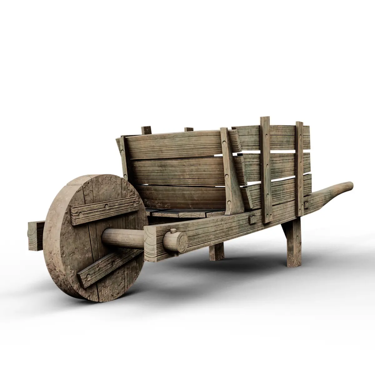 Wheelbarrow01 2024 Unreal.blend - Blender File with One Solid Color Material for Exporting to Unreal Engine;Wheelbarrow01 2024 Unreal.fbx - FBX File with One Solid Color Material and Orientation for Exporting to Unreal Engine;Wheelbarrow01 2024 Unreal Location - XYZ Axis List of Pivot Points Values for Setting Location After Importing FBX