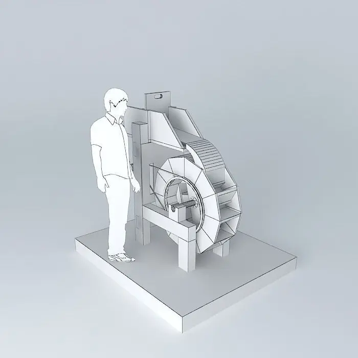 A model of a wooden wheel to the means of learning the techniques of energy conversion of water into energy to drive the electric generator shaft. Using wood materials so it is quite interesting as a garden ornament. The electricity generated can be used for lighting (lighting) park with low voltage (less than 40 V) that is safe for visitors. Detail images can be read with skecthup free program from Google. In the initial design all the components using a wooden plank width 20 cm, thickness 25 mm, but after a prototype so there is no change, the shaft using a 2-inch galvanized pipe, and a pulley using a bicycle rim, shaft bearings using palm wood (ruyung).