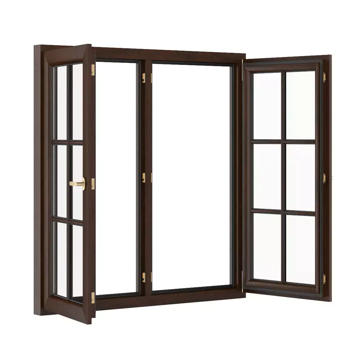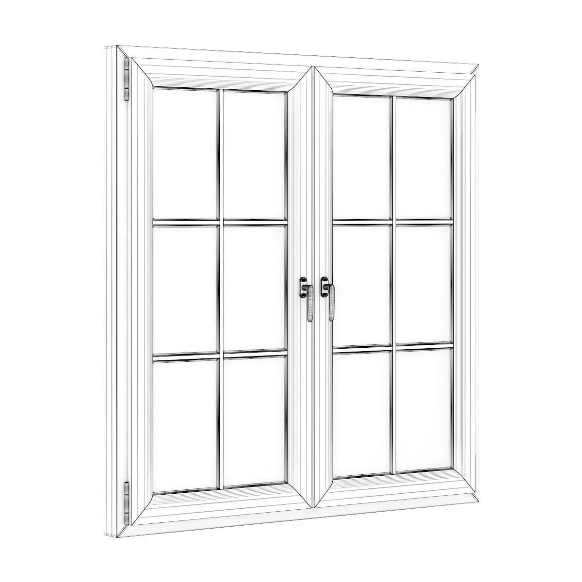 3D model of openable wooden window. Dimensions: 1530mm x 1600mm.