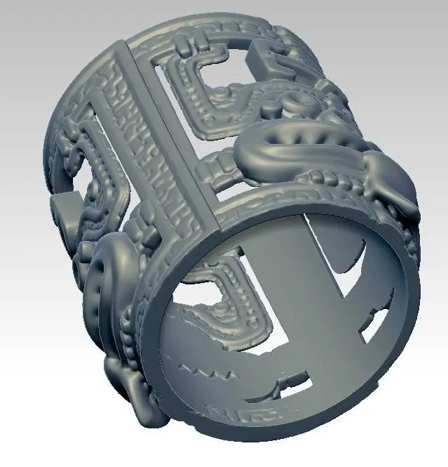 Woodoo Mayan Maori Carved Detailed Ring 3D print model