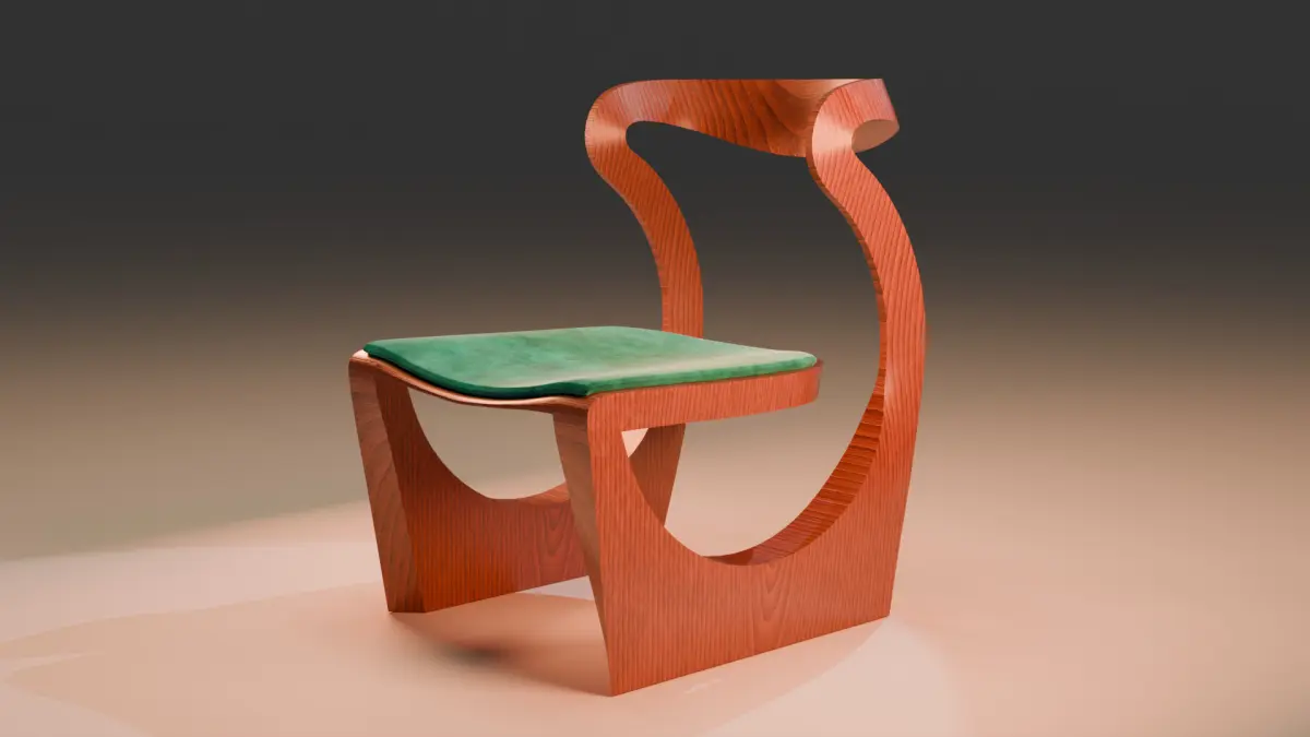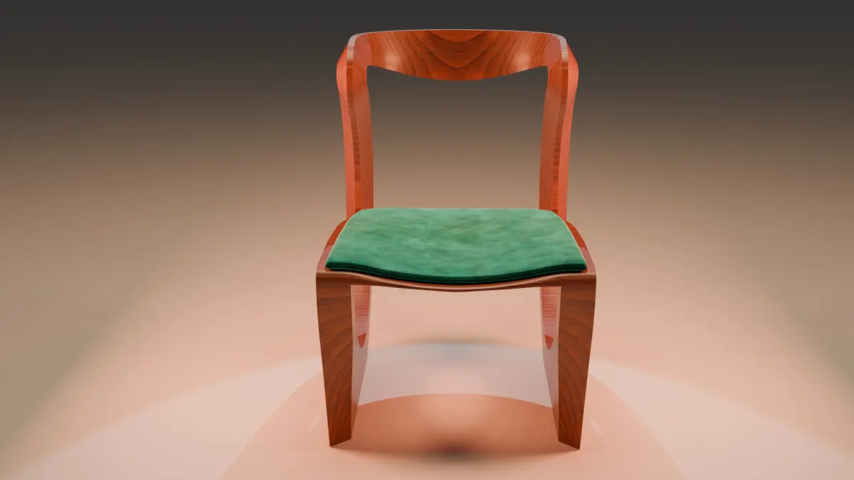 The seat features a cushi Preview animation on upholstered in a velvety green material, adding comfort and visual contrast. Its curved, geometric design provides a contemporary style ideal for architectural renderings, interior design, and product displays. Preview animation o Model turnaround animation included.