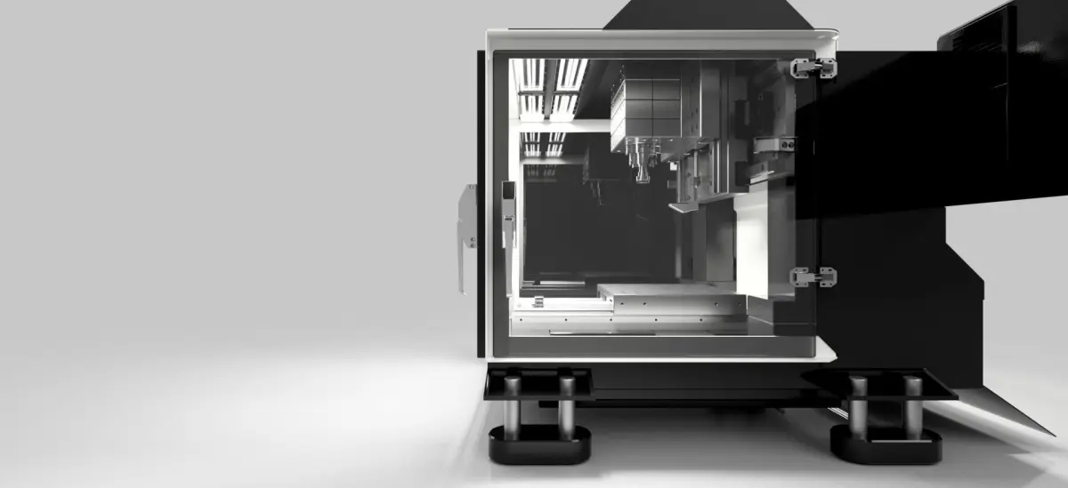 ALIUS is the most Rigid, Noise and Vibration Damping machine available in its size on the market, how we achieve this is by using Epoxy Granite filled Mild steel framing with adjustable leveling, active damping machine feet.