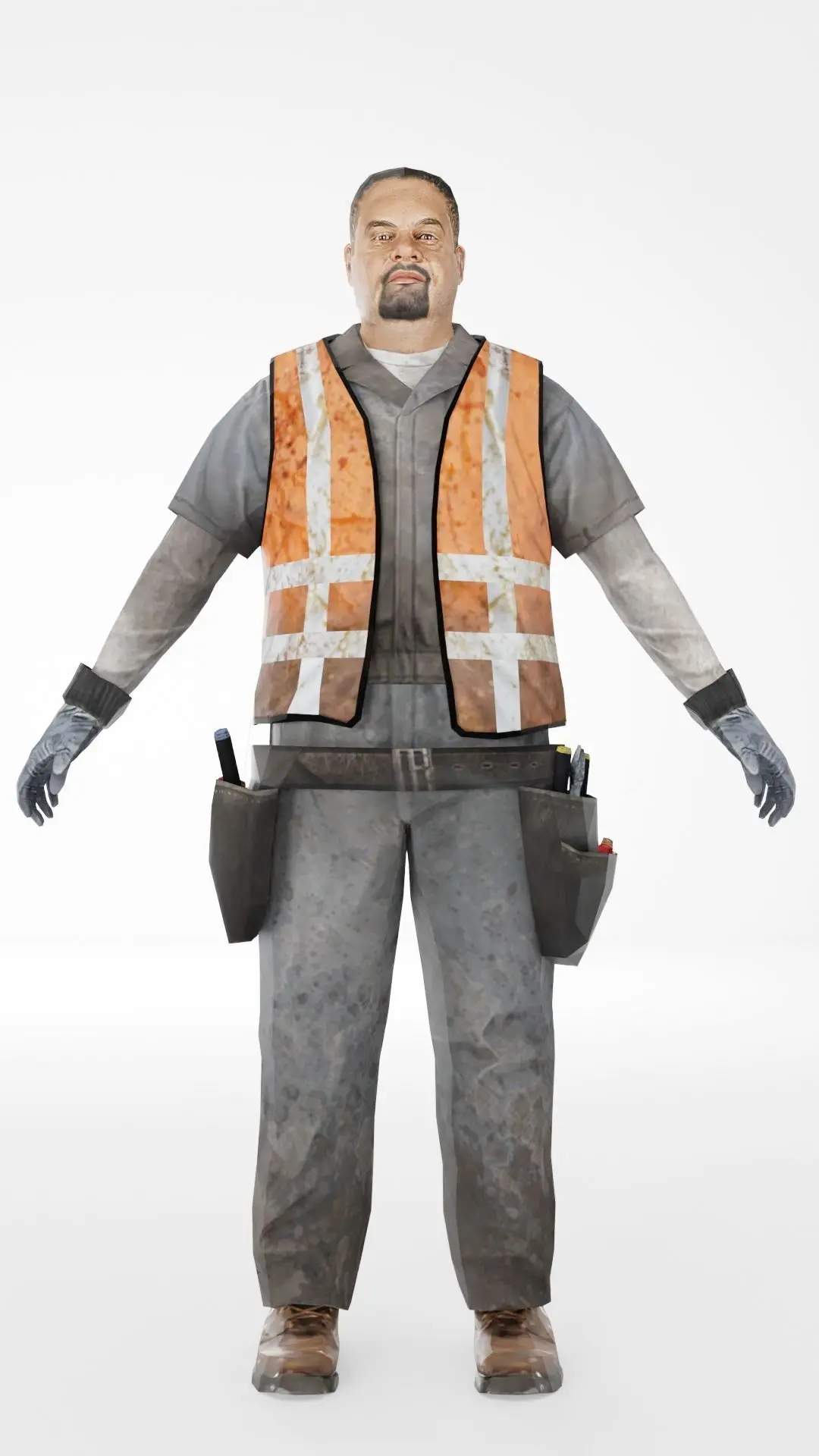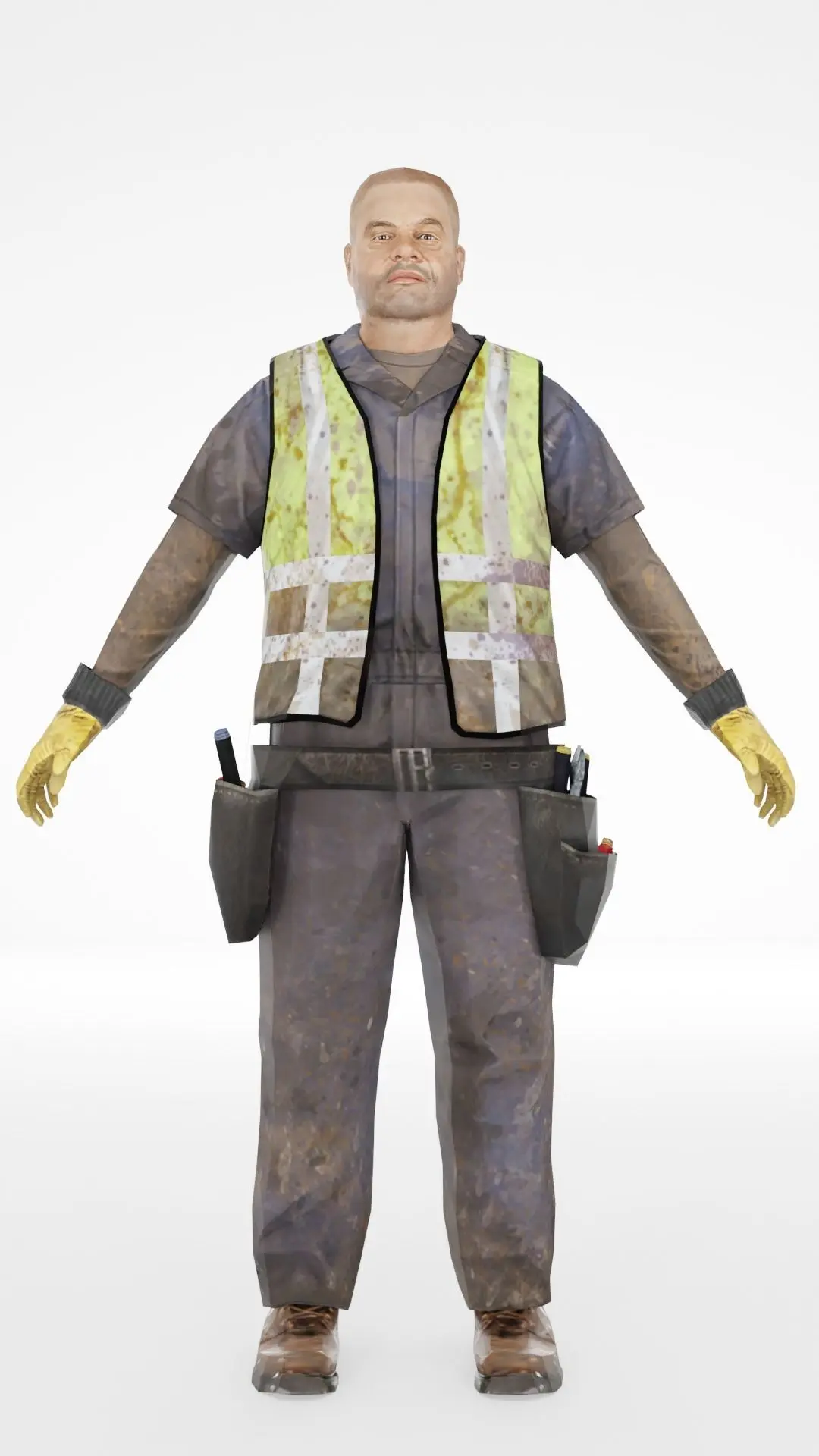 Worker construct Pack Low-poly 3D model fbx, blend, obj, mtl file and PBR Texture