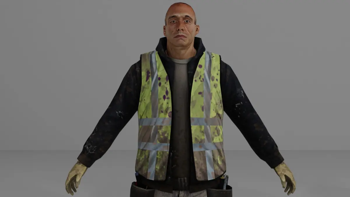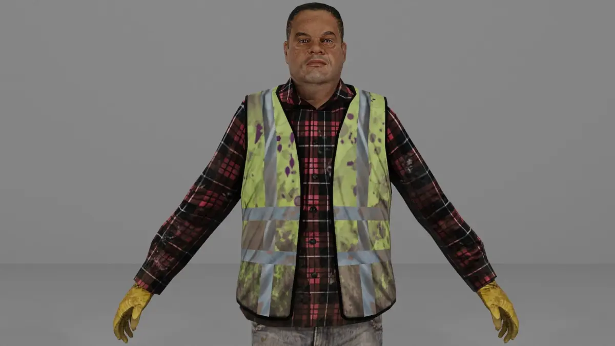 Worker Low-poly 3D model fbx, blend, obj, mtl file and PBR Texture, 6 face Texture designs