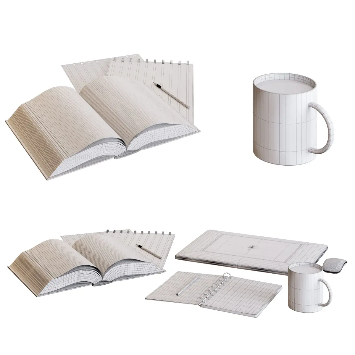 Decorative set for the workplace.The model is made for anti-aliasing, all objects, textures and materials have logical names.Corona 6 versionThe VRay version of the model was made using conversion.