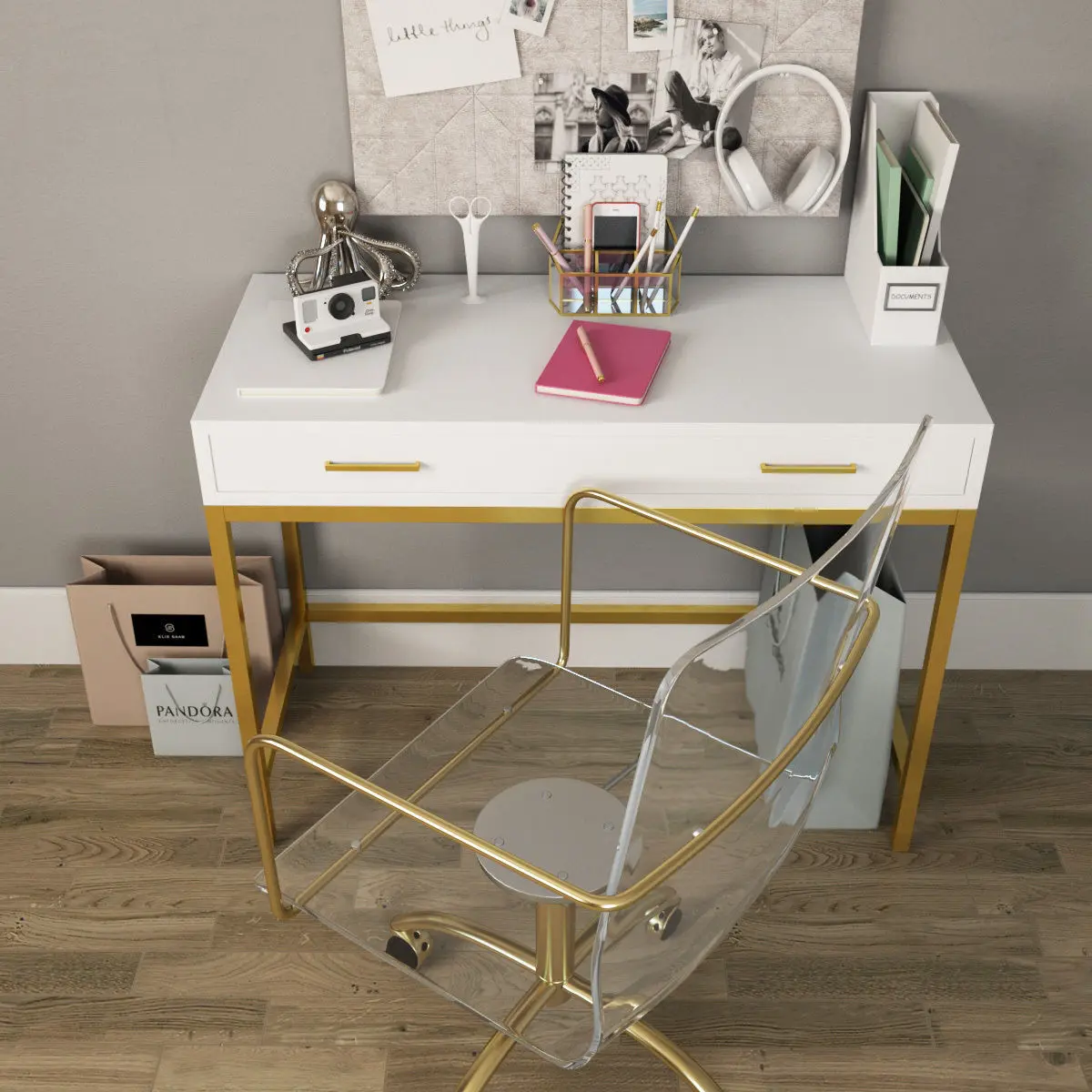 -Gold Paige Acrylic Swivel Desk Chair -Blaire Classic Desk