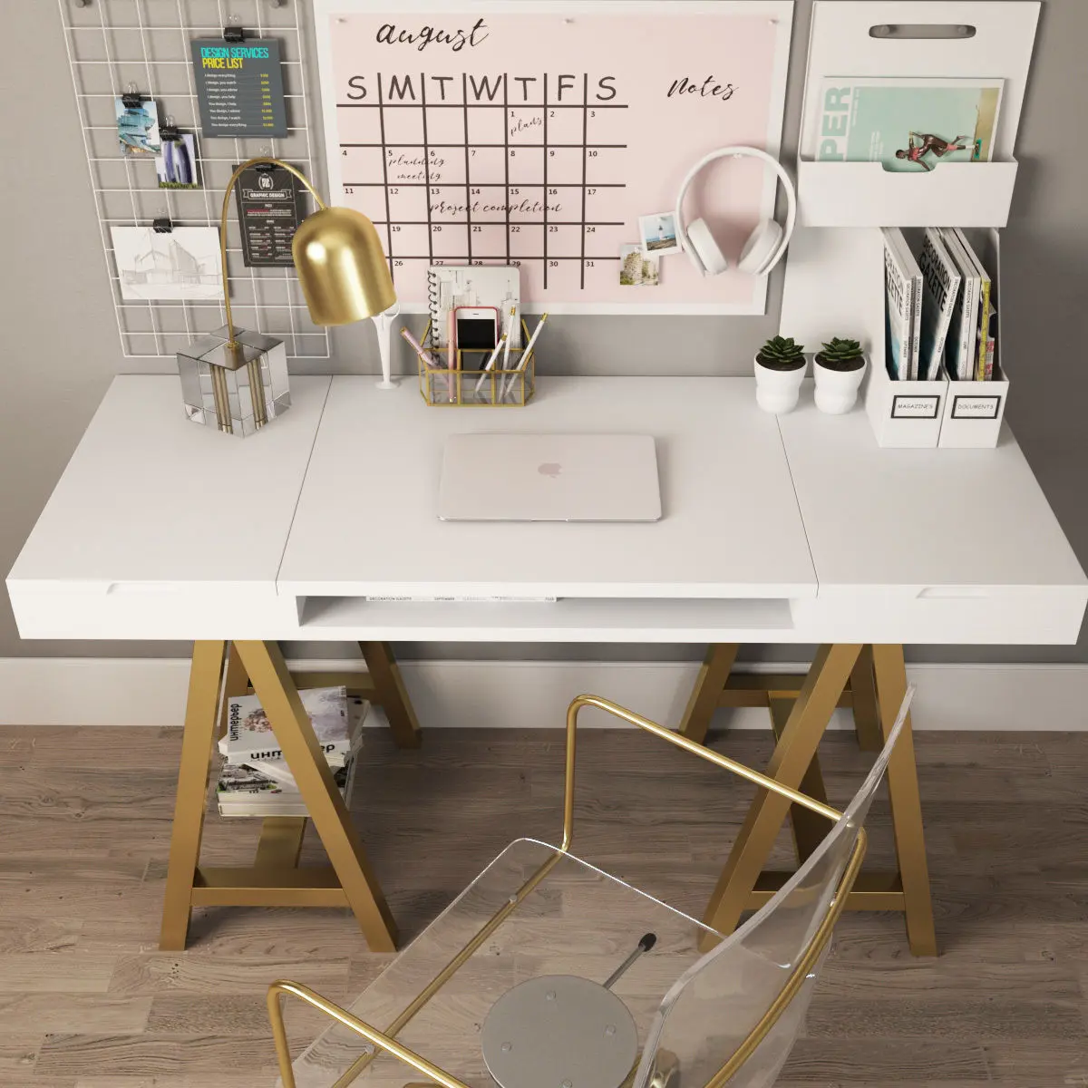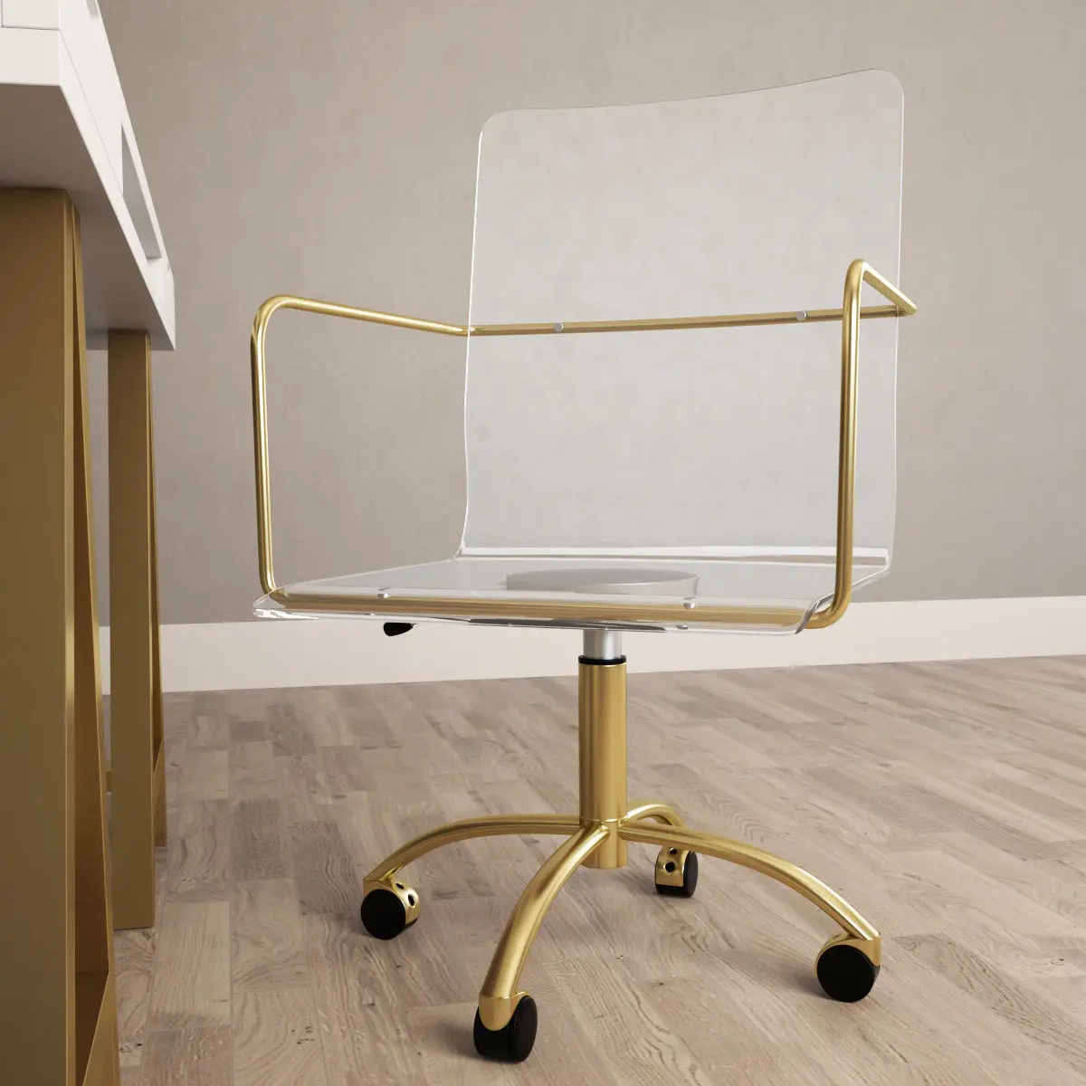 -Gold Paige Acrylic Swivel Desk Chair -Customize It Project Desktop, Metal Legs