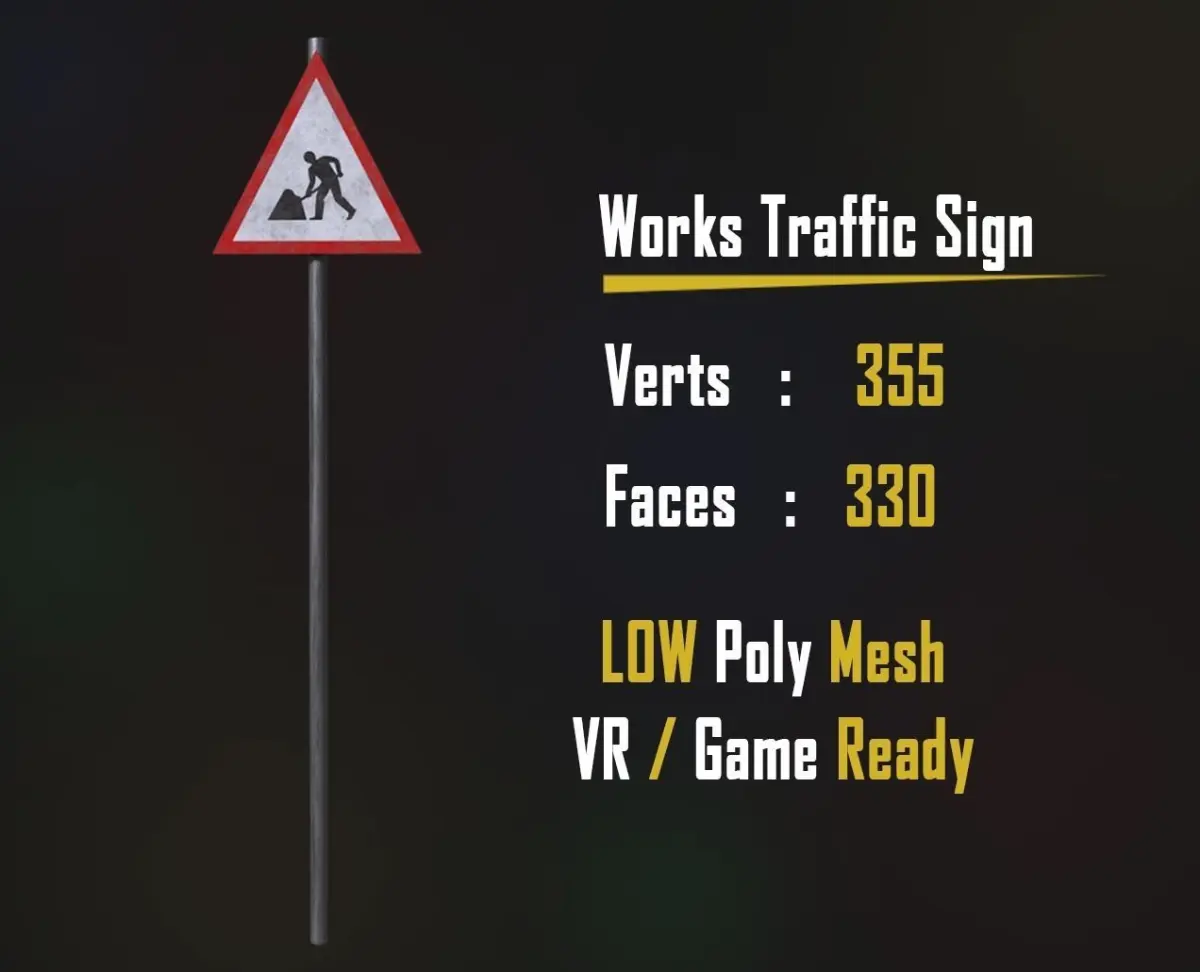 Works Road Traffic SignLow Poly Mesh , Textures are ready for Unreal Engine 4 Basecolor + Roughness + Metallic + Normal Map + AO . Made By : Rush Studio / Ali Aweda . Folow us on our pages for more free models ArtStation : www.artstation.com/awedaali Facebook : www.facebook.com/RUSH.Studio1 Have Fun