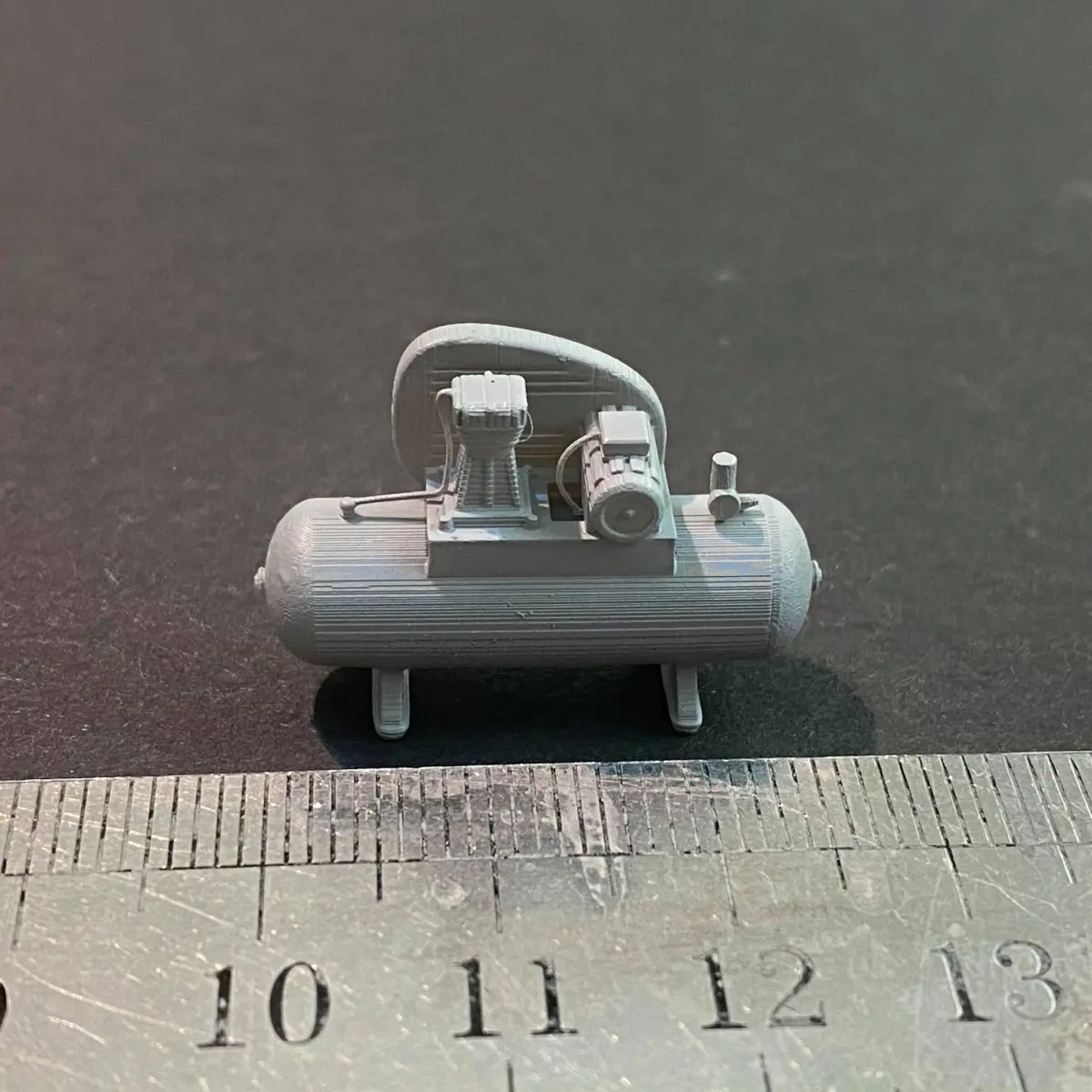 I needed a compressor for the workshop on my 7mm/ft or 1/43 scale O gauge model railway. This is the one I created.