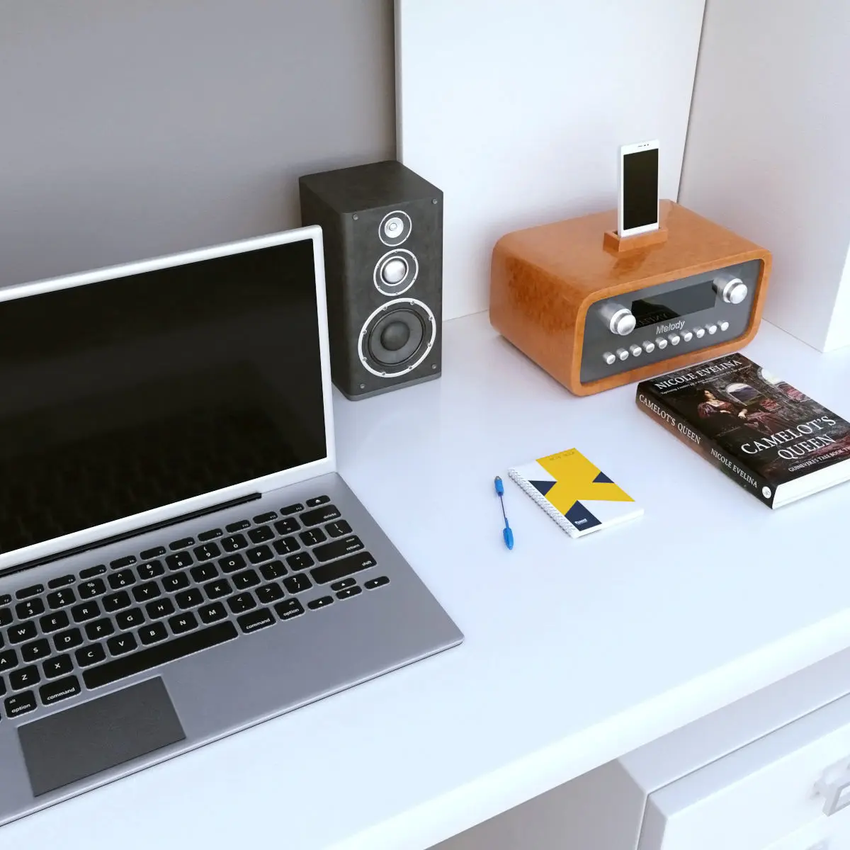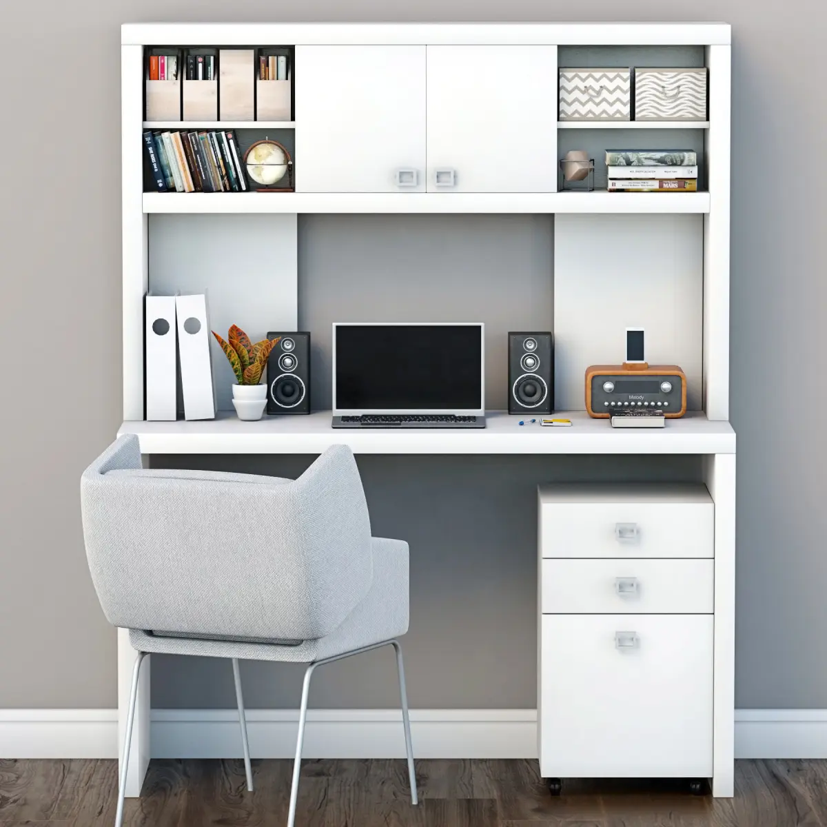3d model of the desktop and shelves with filling