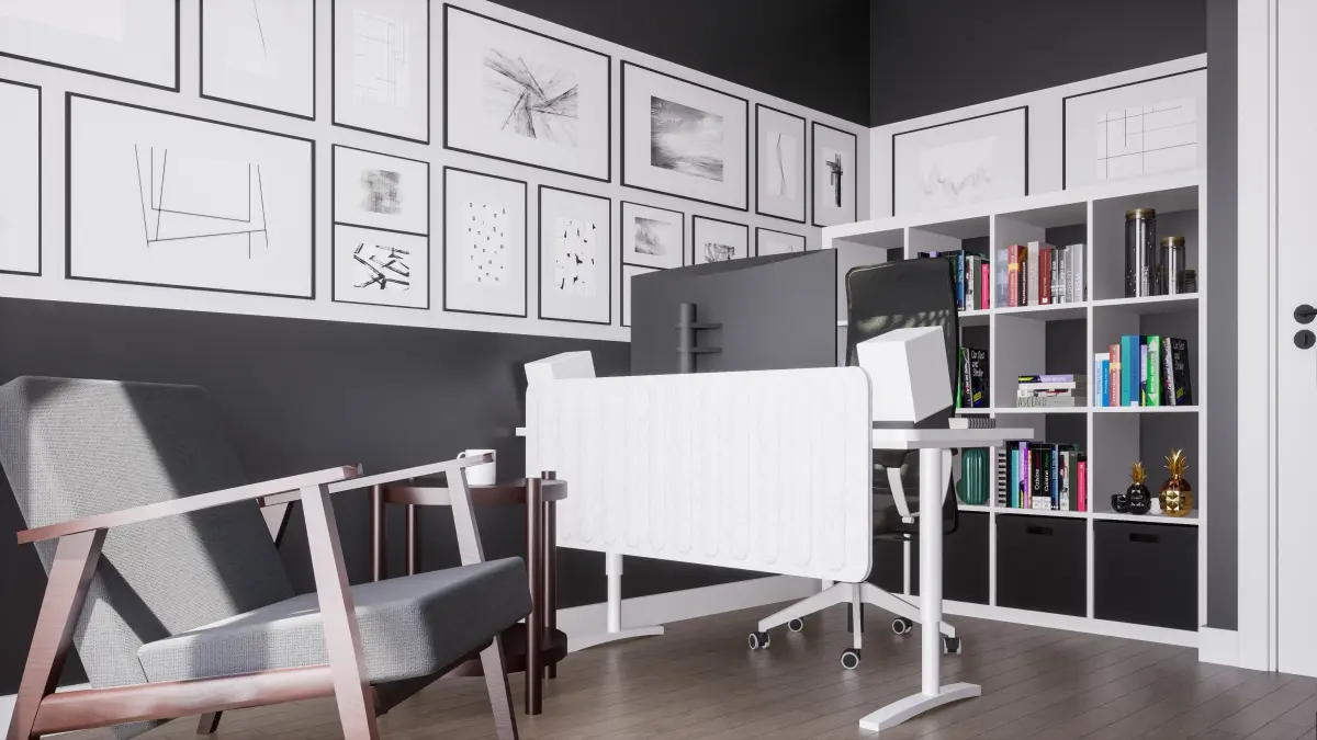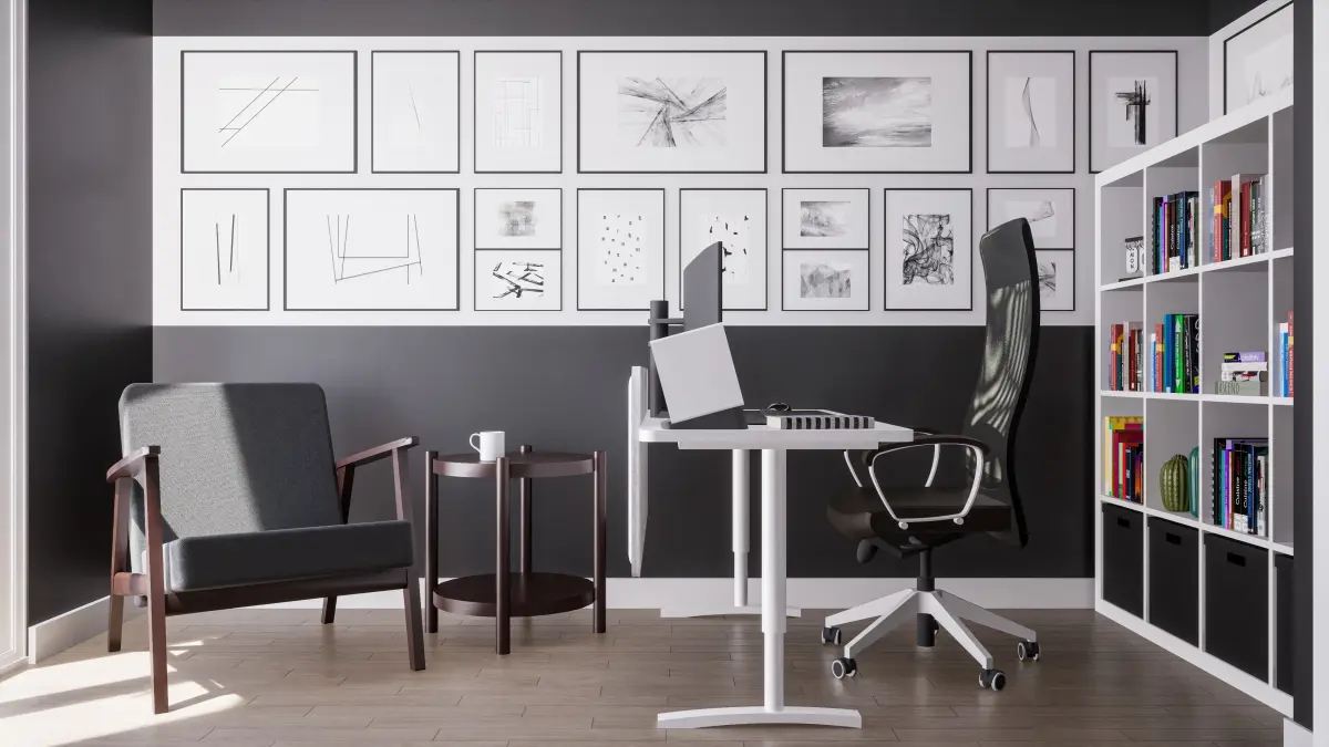 Workspace office room scene designed for a person working remotely from house.
