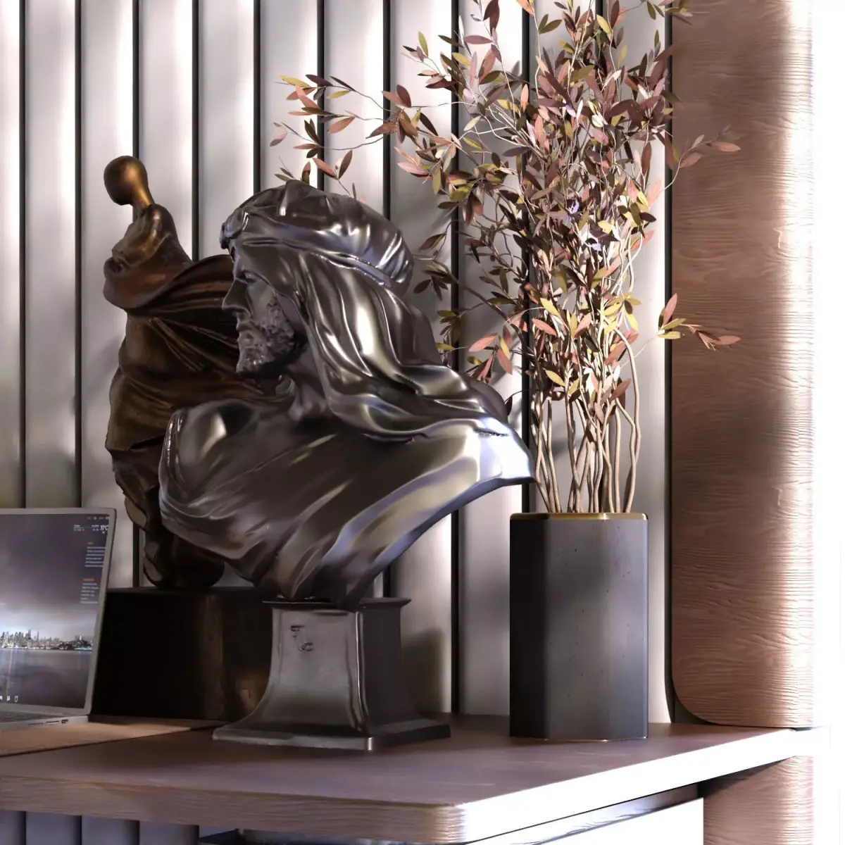 Name: worktable set with sculpture set 771Type: modelMid: Format: 3Ds Max 2019Export: FBXRender: VRay (6.x), Polys: 1073045Verts: 889643Matclasses: Multimaterial,VRayMtl,VRayLightMtl,Units: CentimetersDimension: 235.39 x 191.14 x 223.1