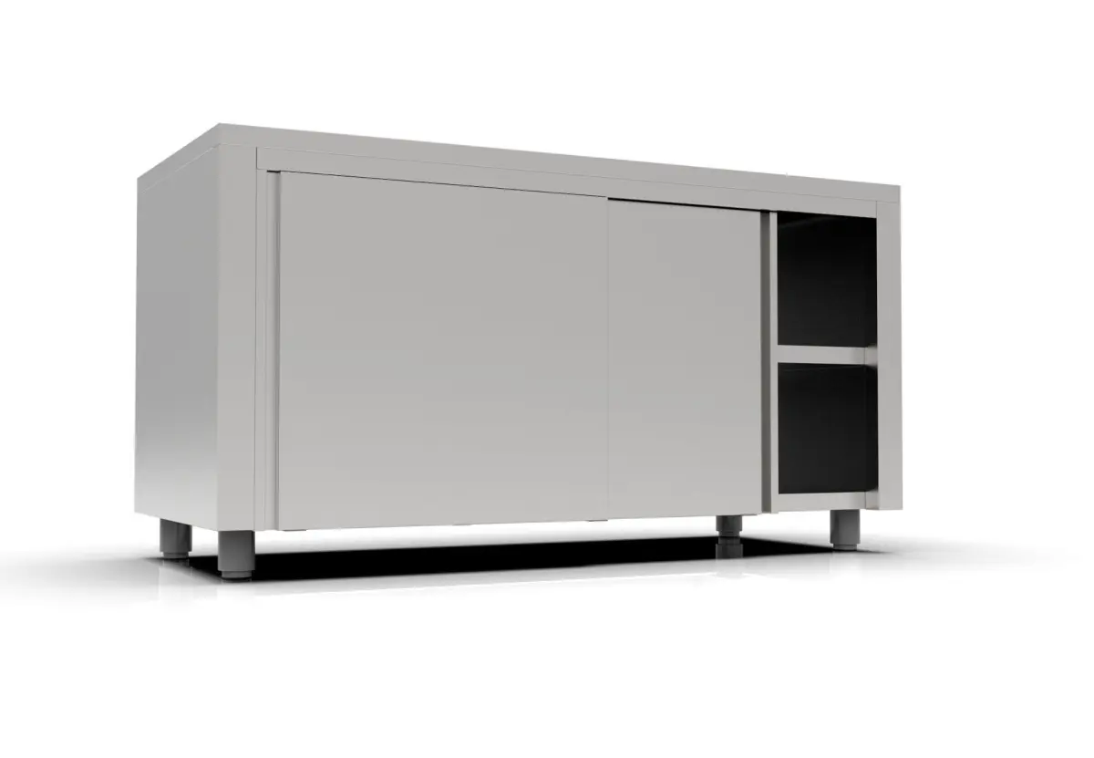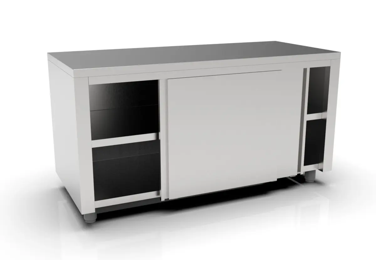 Highly Convenient: Table equipped with sliding doors, allowing easy access to stored ingredients and helping keep your kitchen space clean, tidy, and efficientVersatile Use: Ideal addition to any commercial food service establishment – restaurants, hotels, canteens – enhancing workflow with its convenient design and ample storageDefined Dimensions: TableDimensions : 1600x700x850, perfect size for a variety and flexible use in any space