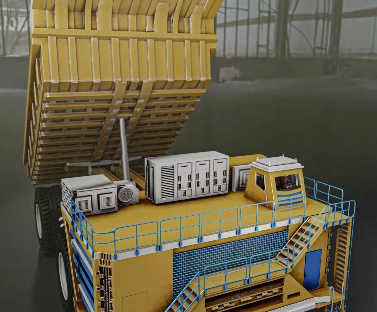 BelAZ 75710Bigest truck in the world.I modeled at a height of 9 meters because I wanted to have more space for the truck.Realistic fully rigged truck loader .You can use the arrow facing up to the side of the front tire and raise the arrow higher than the height of the tire to open the truck loder .The truck is completely rigged.