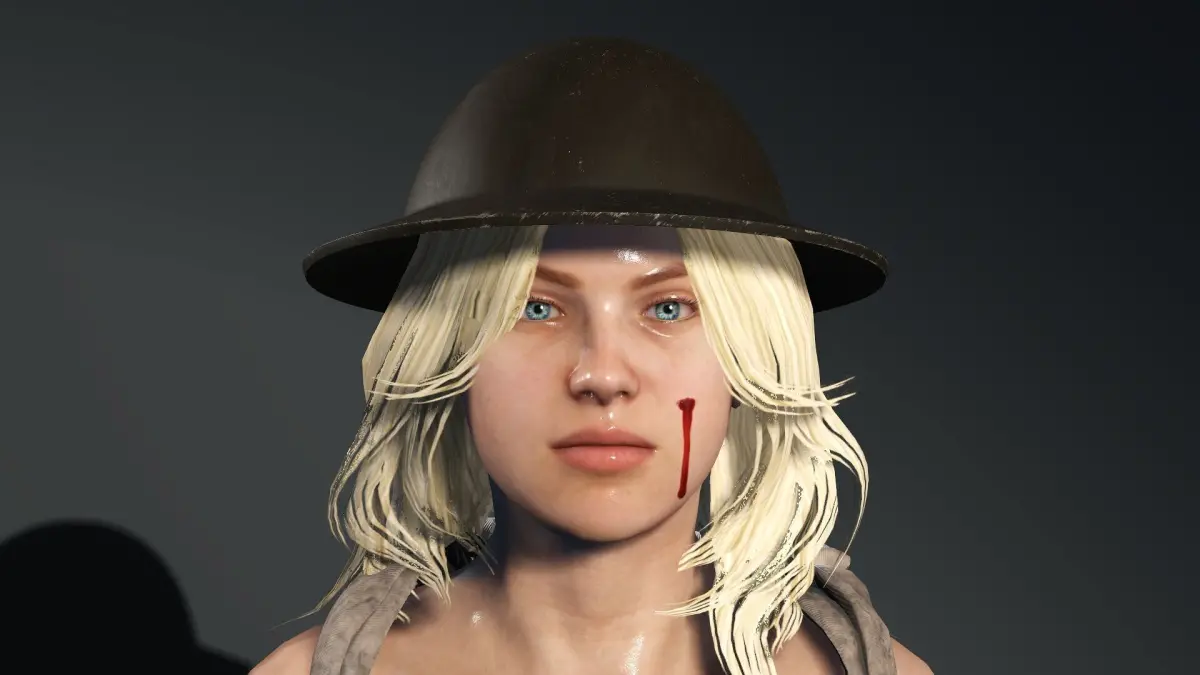 Low-poly 3D model of World War II Sexy Female Blond British Soldier.