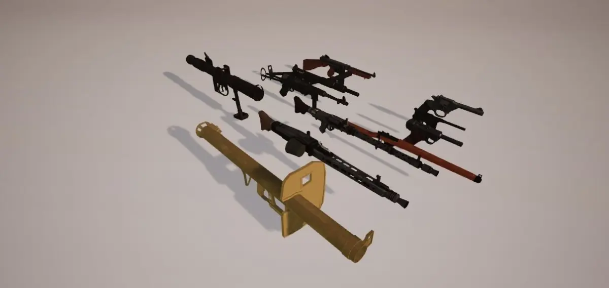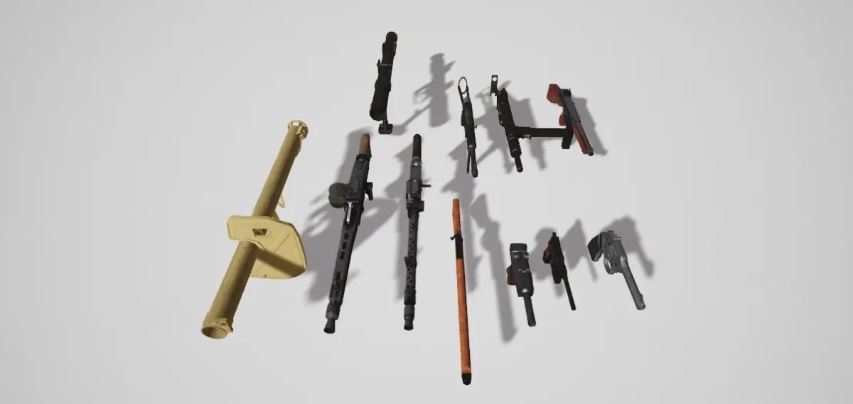 You can buy each of these guns individually by visiting my profile.This is the ultimate world war 2 gun pack, each weapon has it's own unique textures exported as 2k maps, ready for Unreal Engine. Each gun also has an Autodesk Maya and an Autodesk 3DS Max file format, available in OBJ and FBX as well. Each weapon can be edited how you like.It comes with a total of 13 weapons, a mix of British, American and German weapons, and a mix of explosives, pistols and machine guns.