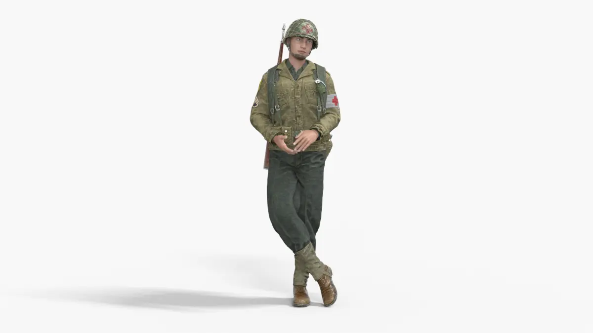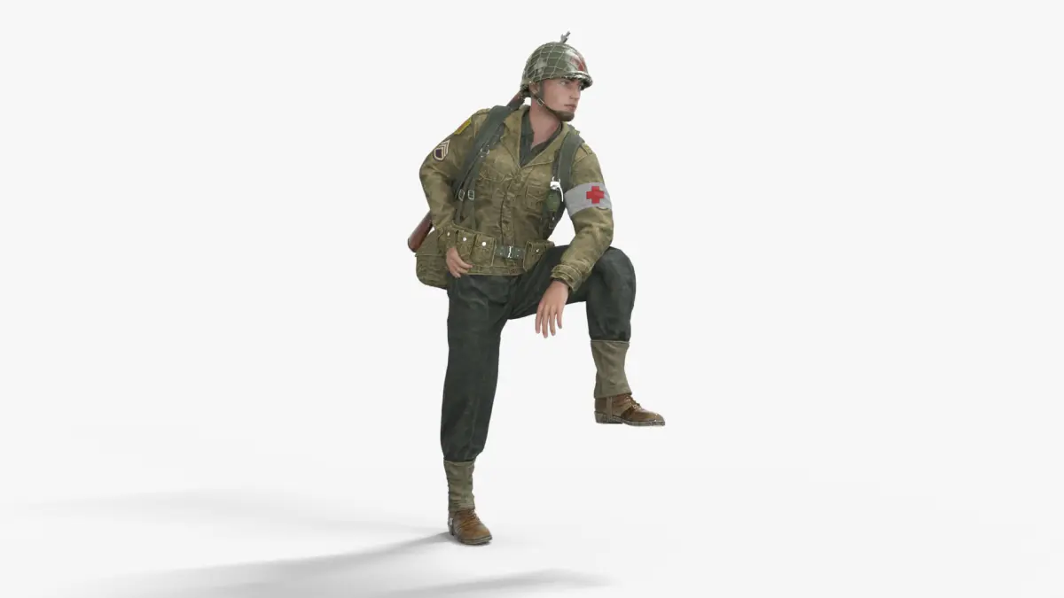 USA WW2 World War II U.S. Uniform Medical Soldier Rigged Animated
