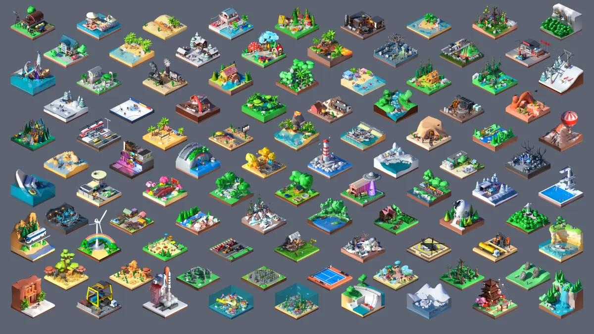 Worlds Casual is a massive 3D model pack featuring 100 unique stylized islands, each crafted in a consistent, vibrant art style. With over 6300 assets covering biomes, buildings, props, and landmarks, it offers endless possibilities for creating diverse game worlds, adventure maps, or simulations. Perfect for games, AR/VR, and creative projects.