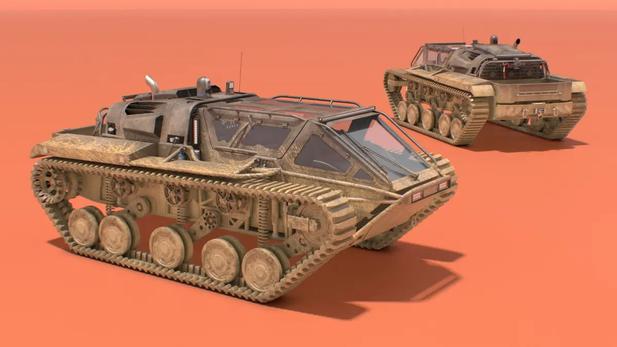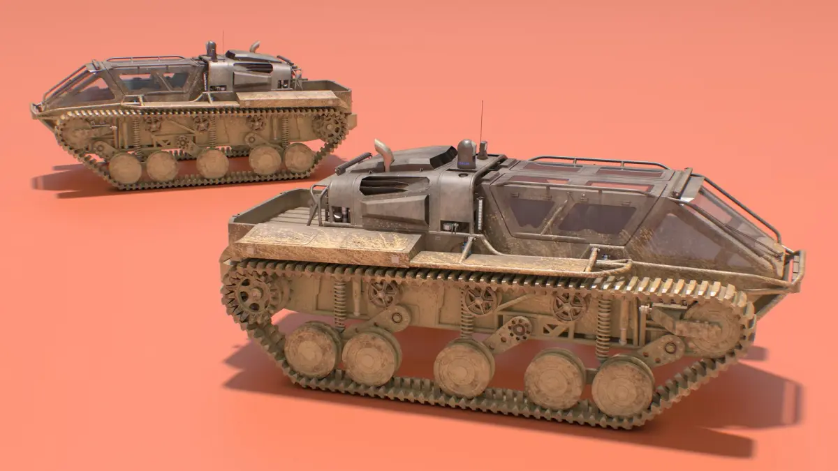 World's Fastest Dual Track Vehicle Dirty is a 3d model of a robust vehicle designed for navigating challenging landscapes, often utilized in off-road adventures and extreme conditions.