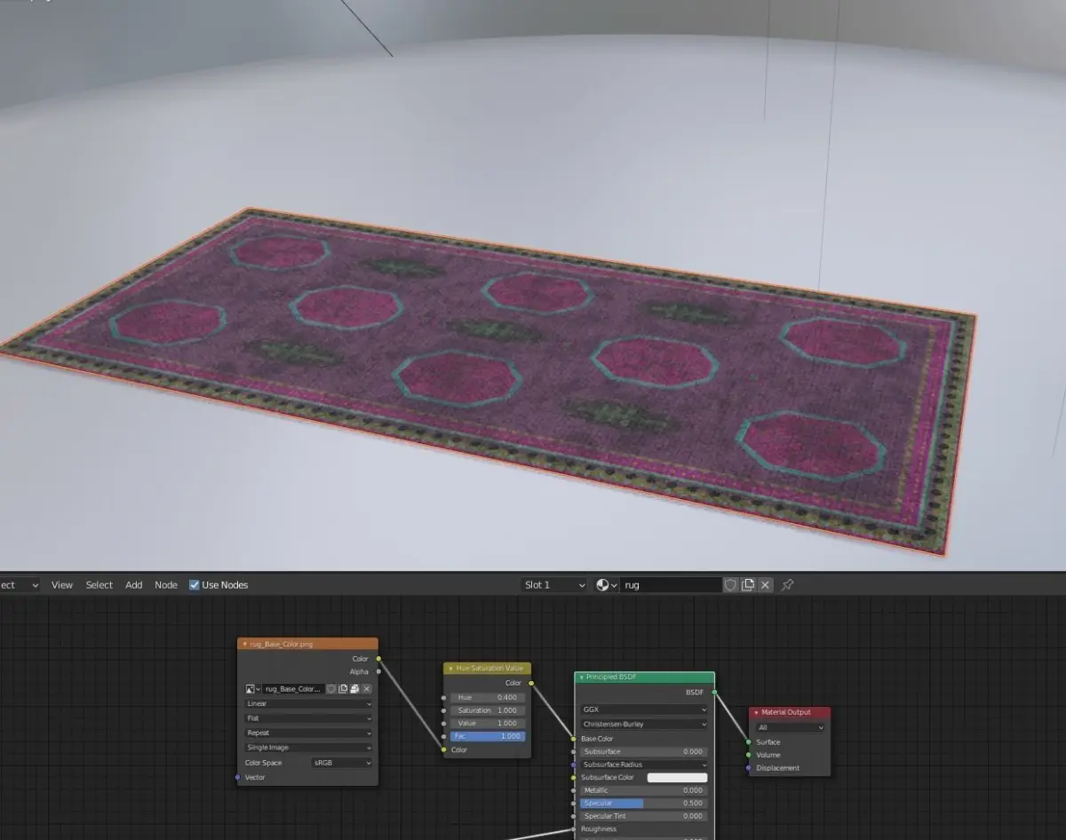 Hue and Saturation shaders within the texture allow for infinate color possibilities. The initial texture is a lovely rust color.