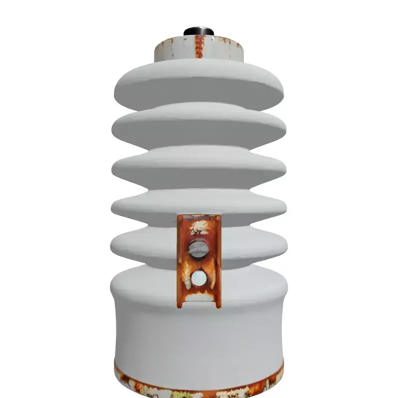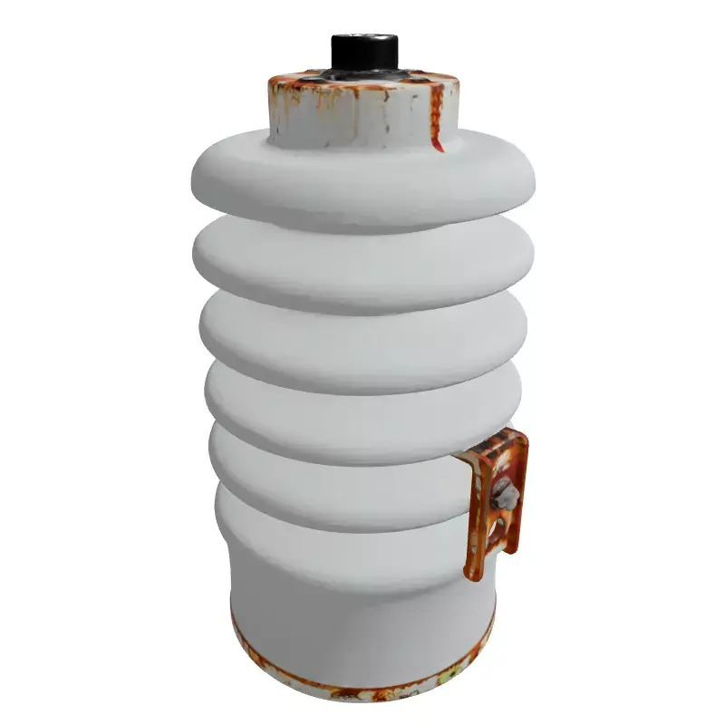 This is a highly detailed 3D model of an old and weathered electrical power line insulator. The model accurately represents a common ceramic insulator found on utility poles and electrical substations, featuring a distinctive ribbed white ceramic body. Special attention has been given to portraying its aged state, including realistic cracks across the ceramic surface and authentic rust and wear on its metallic components, such as the top cap, base ring, and mounting bracket. This asset is ideal for creating realistic and immersive environments in various applications. It can be effectively used in game development for post-apocalyptic, abandoned, industrial, or urban decay scenes, adding a layer of realism and story to your virtual worlds. It's also suitable for architectural visualization projects that require detailed exterior elements, as well as for digital art compositions, VR/AR experiences, and historical reconstructions. The model boasts clean topology, is UV unwrapped, and includes high-resolution PBR textures to ensure a physically accurate and visually stunning representation across different rendering engines. Supported file formats include GLB, OBJ, FBX, USD, DAE, ABC, and PLY, making it versatile for most 3D pipelines. While optimized for visually rich static renders and high-quality cinematics, its robust detailing also makes it suitable for real-time applications where visual fidelity is paramount.
