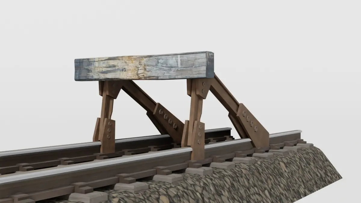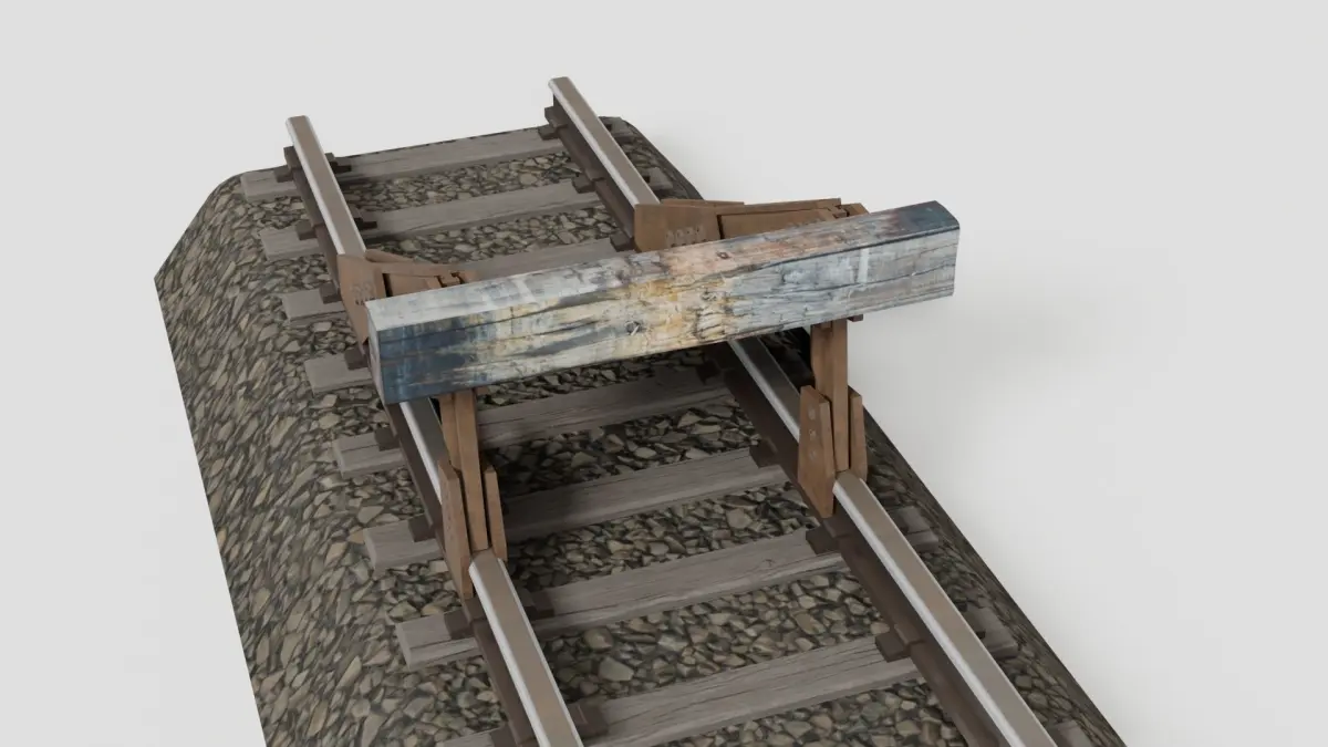 A worn railway buffer stop. Textures and PBR materials included. Other file formats include alembic, ply and x3d. Low-poly and game ready. The buffer stop and the railtrack are included as separate models.
