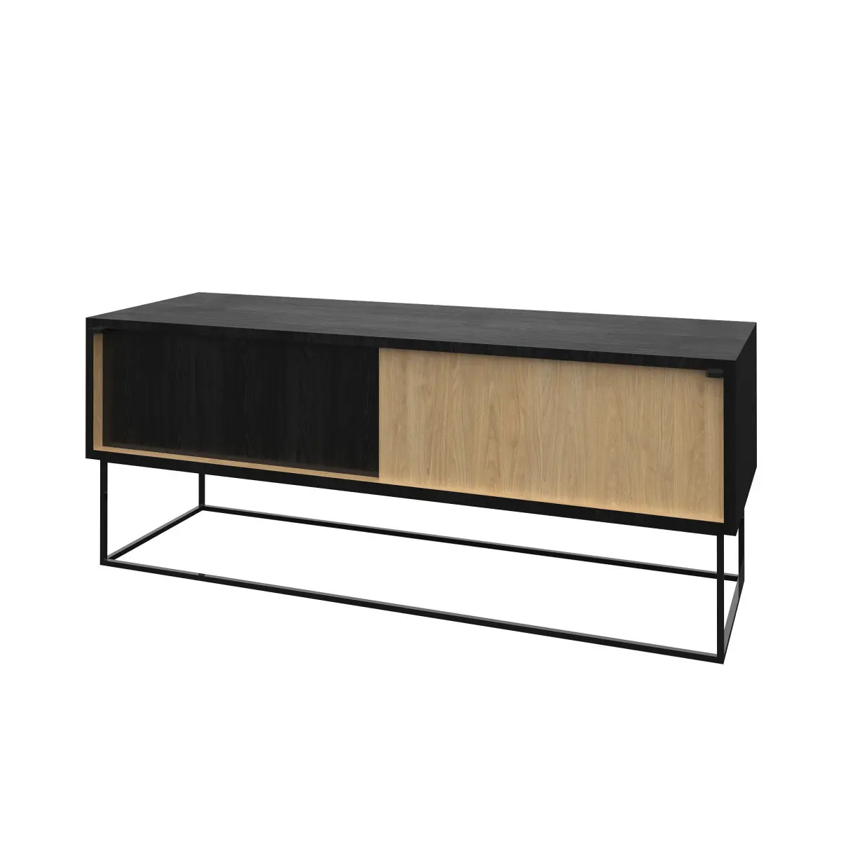 Virka is an elegant and timeless sideboard. With clean lines and a simple expression, the Virka sideboard can be a part of a consistent design language or be a standalone object. The sideboard is designed with sliding doors, so it will never take up unnecessary space in your room. The geometrical frame makes Virka seem light and almost hovering over the floor. Inside the Virka sideboard has one adjustable shelf in each side with room to let cables pass on the back and out through the holes in each backboard.