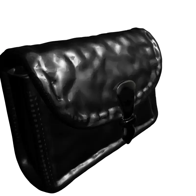 This highly detailed 3D model presents an exquisite woven leather clutch bag, meticulously crafted to replicate the luxurious texture and elegant design of a real-world fashion accessory. The model features a distinctive interweaving pattern across its main body and flap, showcasing exceptional craftsmanship and intricate detail. A sleek, polished metallic clasp adds a touch of modern sophistication, creating a striking contrast with the rich, dark leather material. The topology is clean and optimized, ensuring smooth subdivision for close-up renders and high-fidelity visualizations. This model is fully UV unwrapped and comes with PBR textures, allowing for realistic material rendering in various lighting conditions and environments.