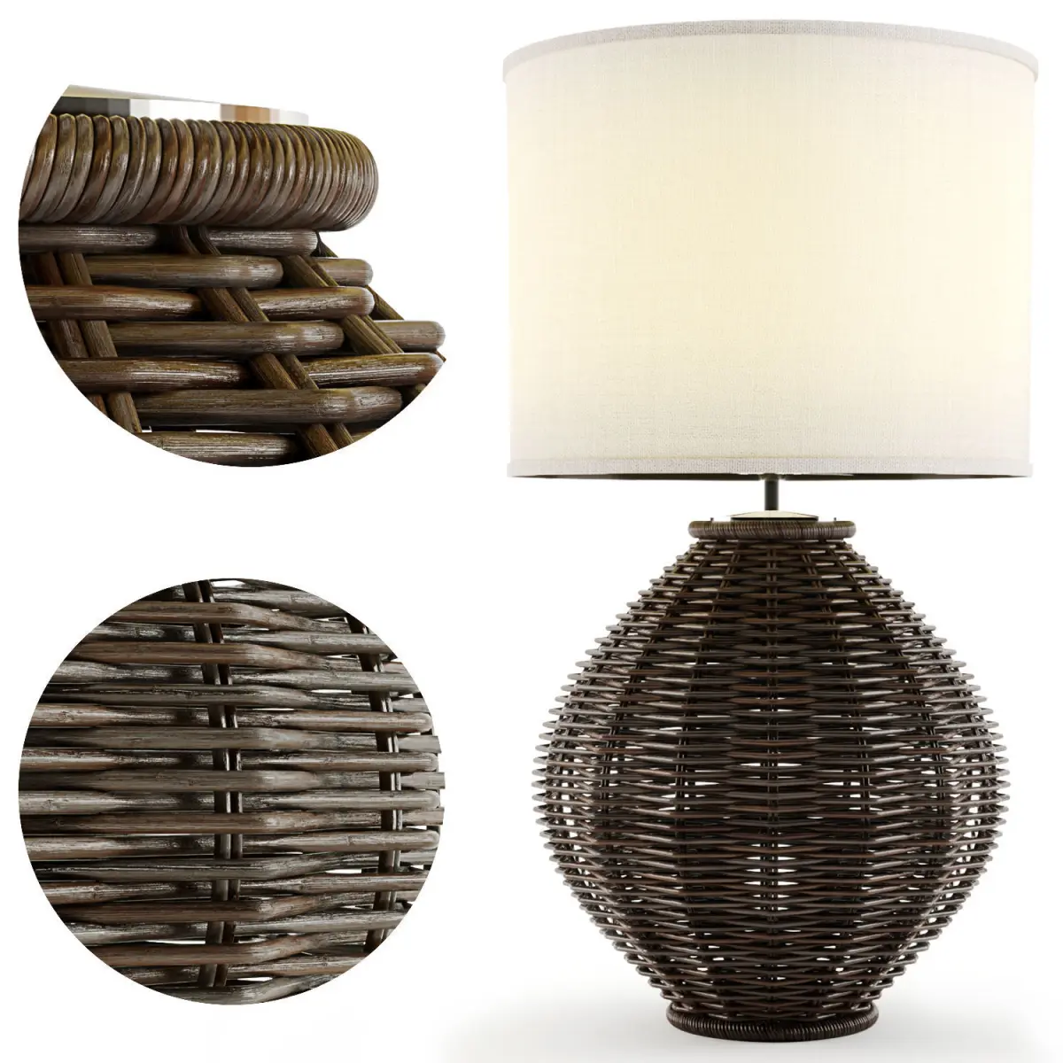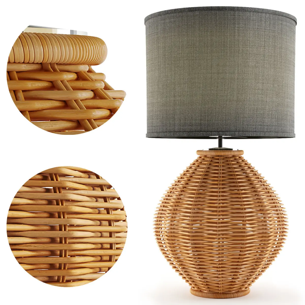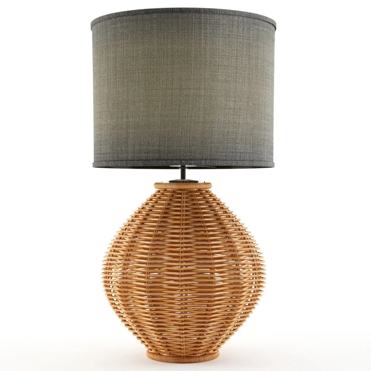 Woven Rattan Table Lamp with Drum Shade Boho Natural Brown Finish with Gray / Beige Linen ShadePerfect for night stands, end tables, desktops, and entrywaysPortable lighting with a versatile style can easily be moved to any space in your home