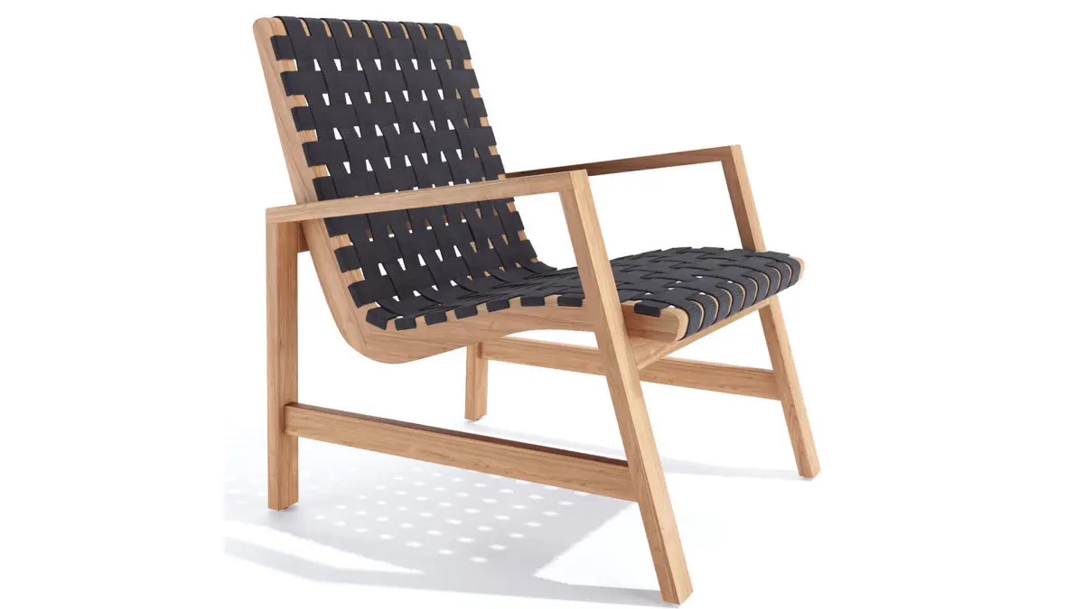 The Aero Chat Chair is designed to fit small patios, by the pool, or pulled up around a fire. The premium teak frame is combined with weather-resistant polyester straps for long-lasting comfort.Overall dimensions: W 25.5x D 28 x H 31.75Seat W: 21.75Seat D: 18.5Seat H: 15.75Arm H: 22.75"