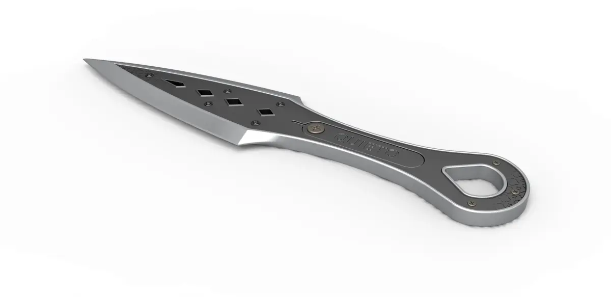 The model consists of parts: Blade screw cap 1-10, Body part 1,2, Inner plate, Insert hub 1,2, Plate with QUIETO 1,2, Rear screw cap 1,6, Side plate front part 1,2, Side plate rear part 1,2.