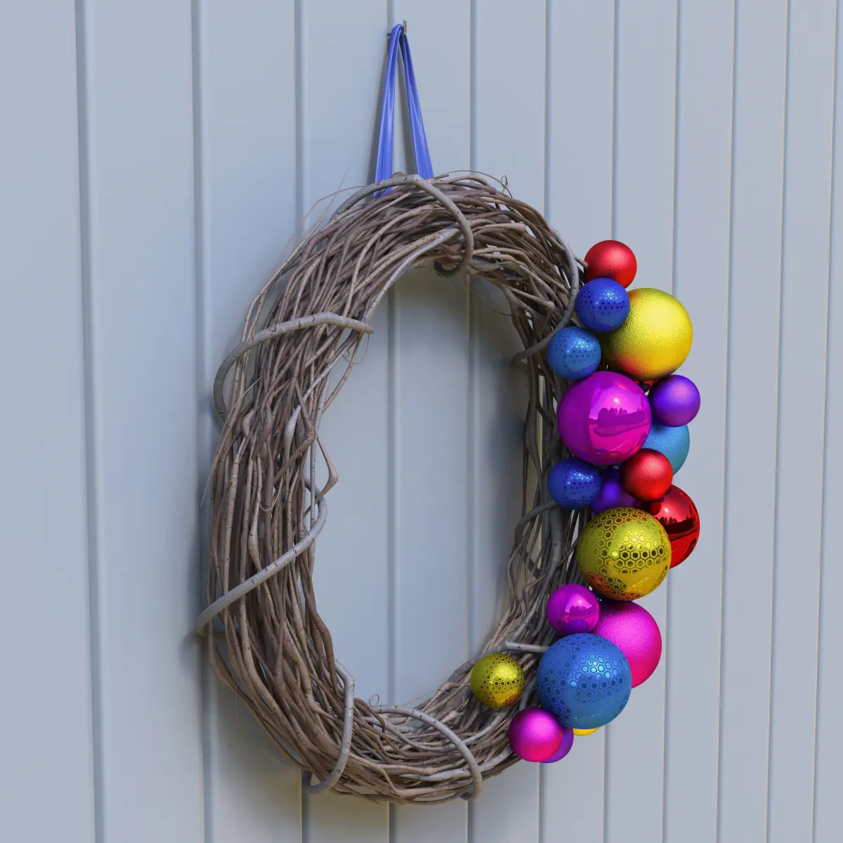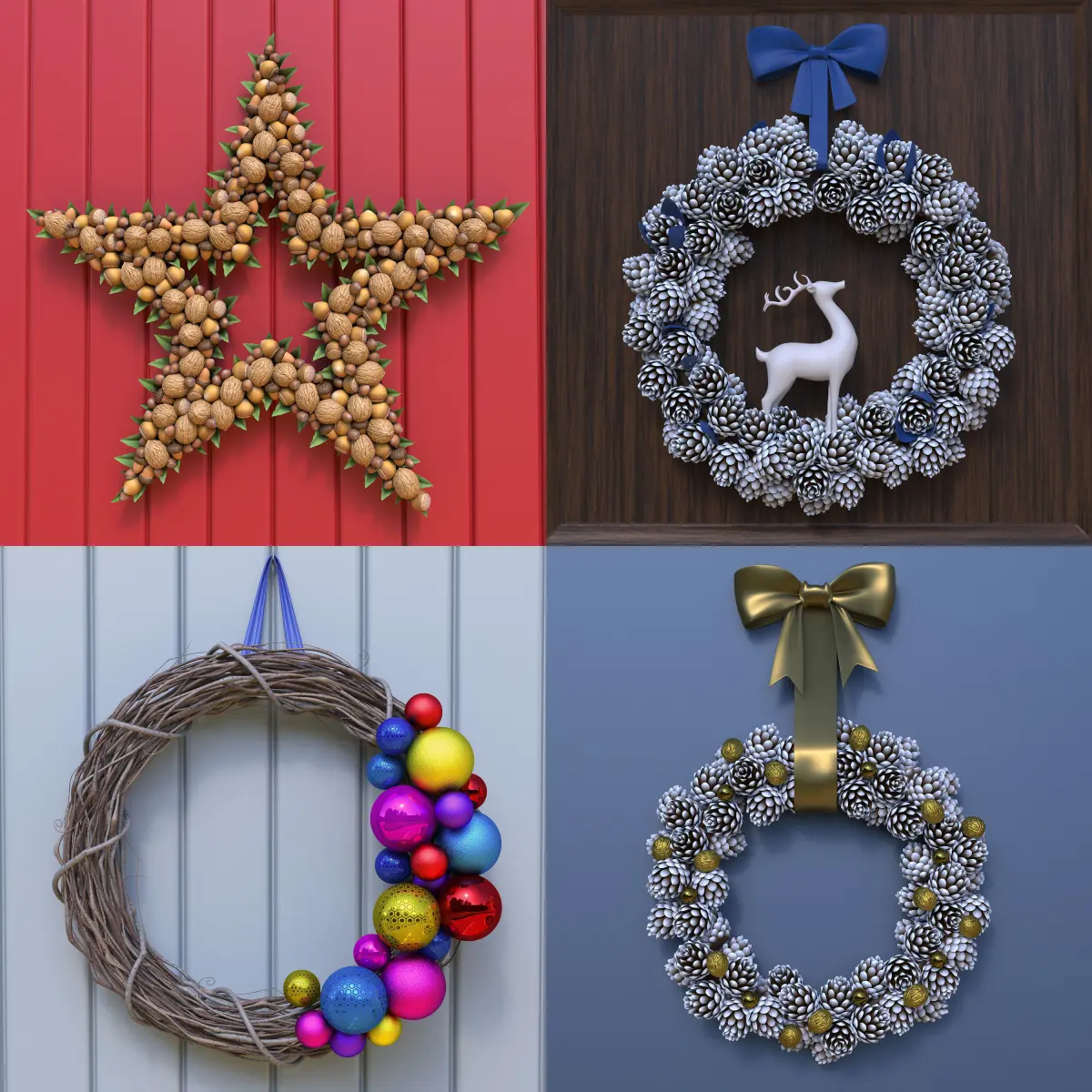 Pine cone wreath (blue ribbon, model ID: #2164764):1 1024x1024 diffuse map1 1024x1024 displacement map1 1024x1024 diffuse map (wooden plaque).Polygons: 710,427Vertices: 722,707
