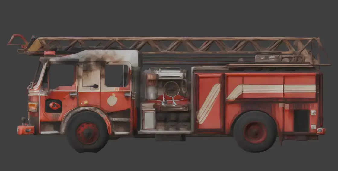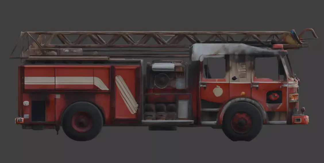 Tags fire-truck, fire-engine, vehicle, wrecked, abandoned, ruined, destroyed, apocalypse, war, rust, transport, debris, rubble, realistic, wasteland, environment, post-apocalypse, pbr, prop
