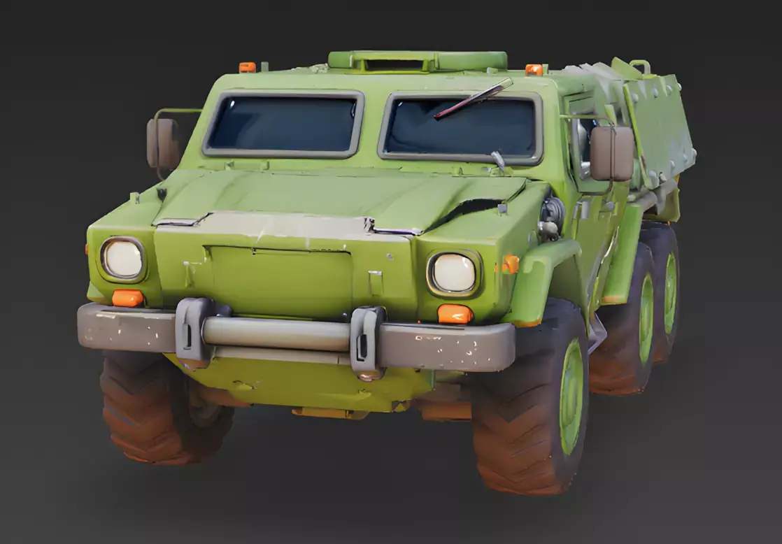 Opaque Armored ViewportsIn accordance with specialized design requirements, the windshield and side windows are modeled as solid, dark-tinted opaque panels. This design choice strictly avoids the use of any glass or crystal materials to ensure the asset is highly optimized for performance while reinforcing its role as a reinforced combat unit.