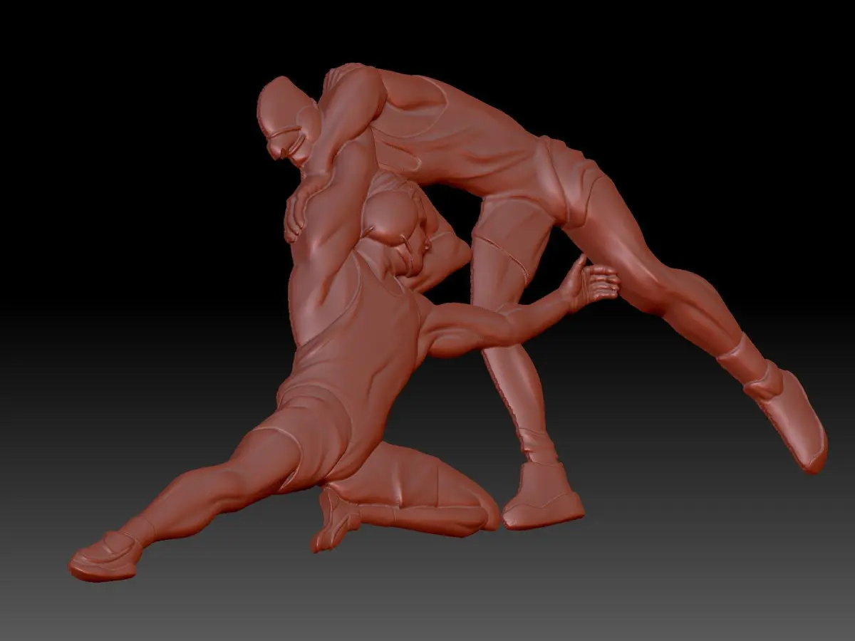 A 3D model of a bas-relief called wrestling. This work of art depicts a wrestling match between men. This is a dynamic and beautiful piece of work that is perfect for both 3D printing and CNC machining.