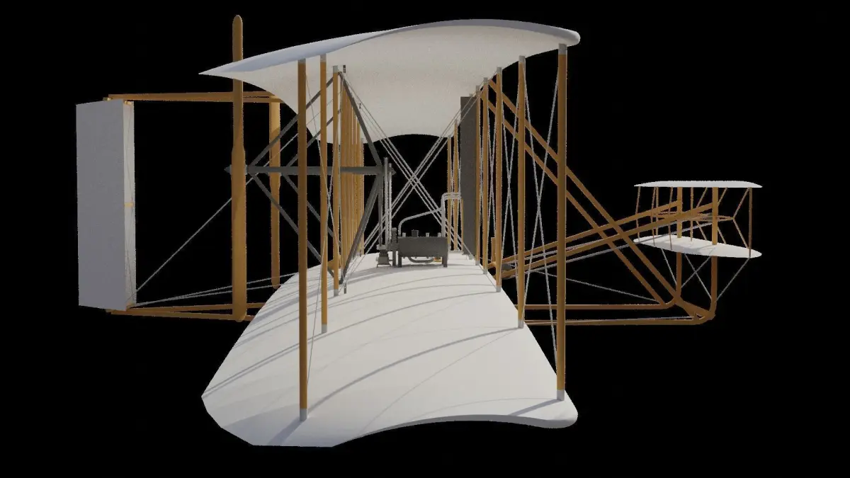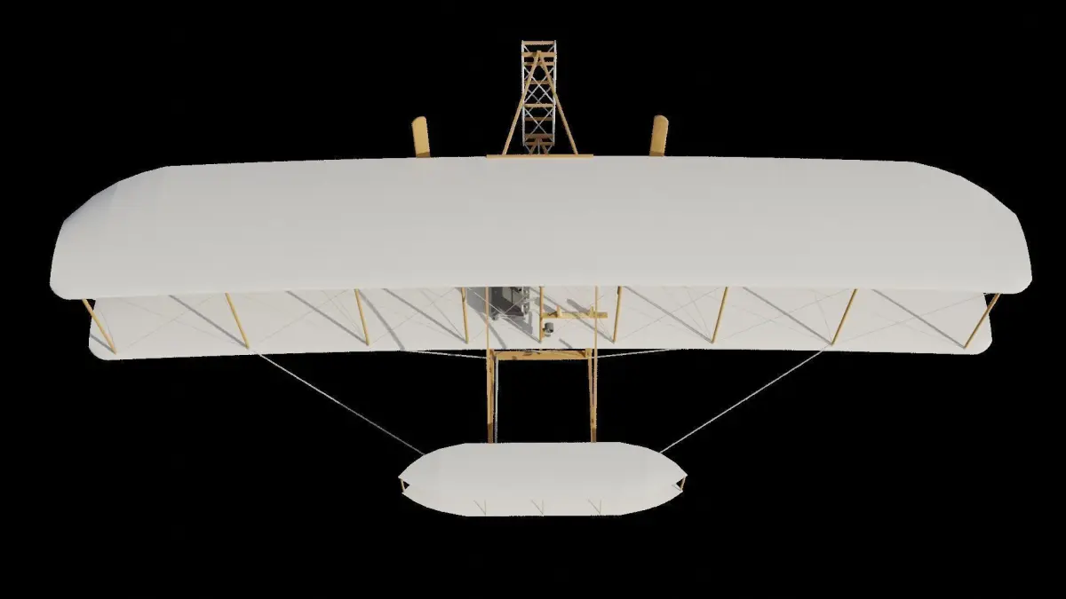 On December 17, 1903, at Kitty Hawk, North Carolina, the 1903 Wright Flyer became the first powered, heavier-than-air machine to achieve controlled, sustained flight with a pilot aboard. It flew forward without losing speed and landed at a point as high as that from which it started.