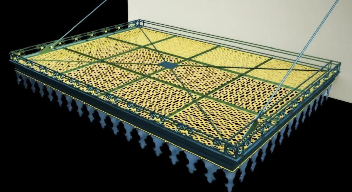 A front entry canopy made out of wrought iron + brass elements with all details.It can be used as a basic for manufacturing and can sure be modified to other dimensions and other material combination.... will be glad to answer any qustions
