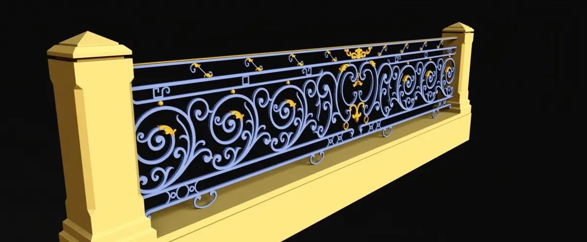 Produced as dwg. Can be extended to other dimensions.Designed for exterior facilities (facade) of classic and modern building.Suitable also for facades with balconies and for stairs in the interior.