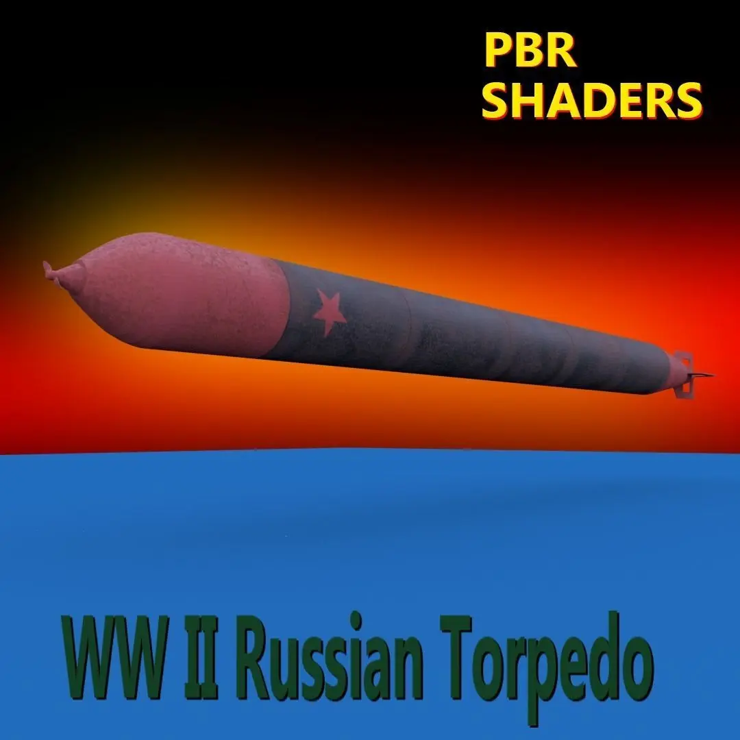 Russian torpedo from WW II.New and Aged PBR textures included.Daz Studio scale adjusted obj.Rendered in Cycles and I Ray.
