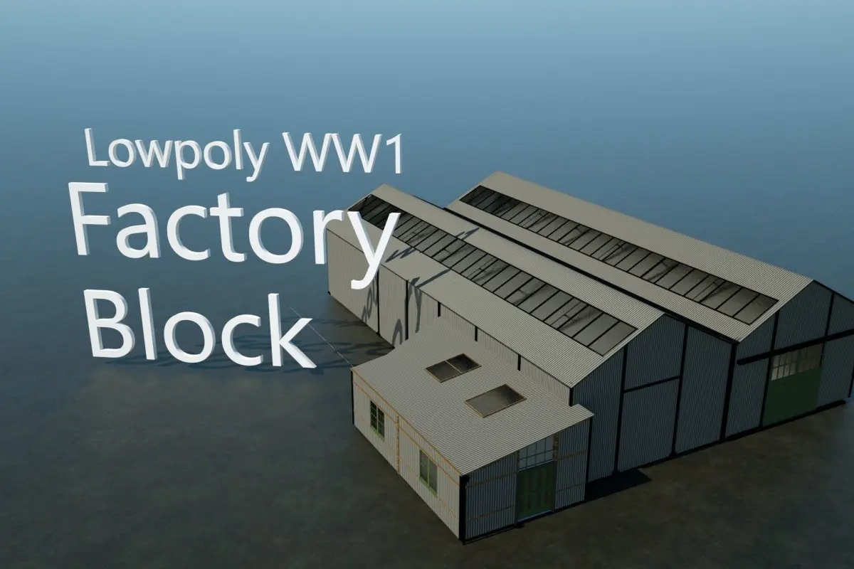 A fairly detailed model of a World War 1 era iron factory building, complete with lowpoly option. Please note that unlike most of our models, this is NOT UV mapped. C4D instructions included for iron and steel reflectance.