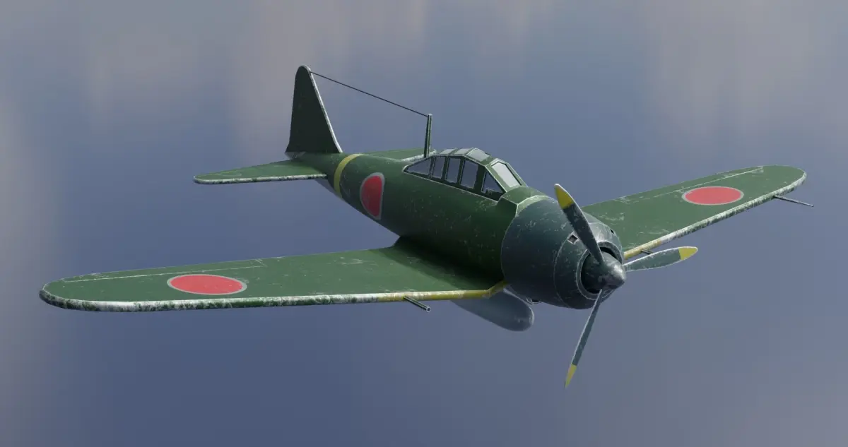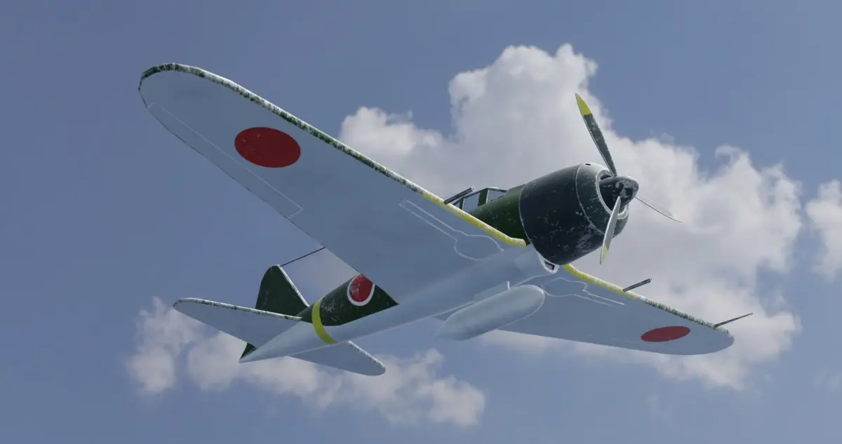 Game ready low poly 3D model of WW2 aircraft Japanese Mitsubishi A6M Zero Zero Fighter
