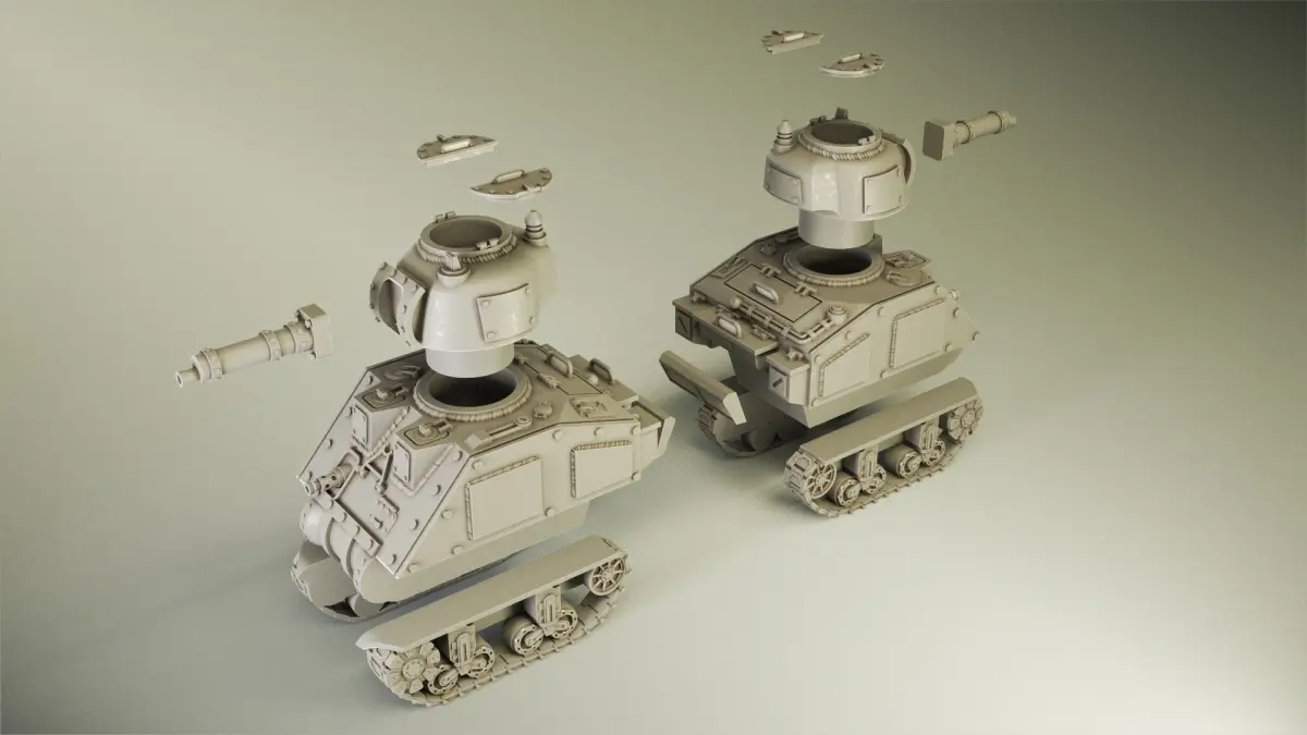 M4 Sherman Medium Tank inspired Grot tank for use in your Warhammer 40k ork army. Designed to be printed in Resin. All turrets and weapons are interchangeable between the other WW2 American tanks. Hatch is opeanble for you to convert your crewman from the Grot box.