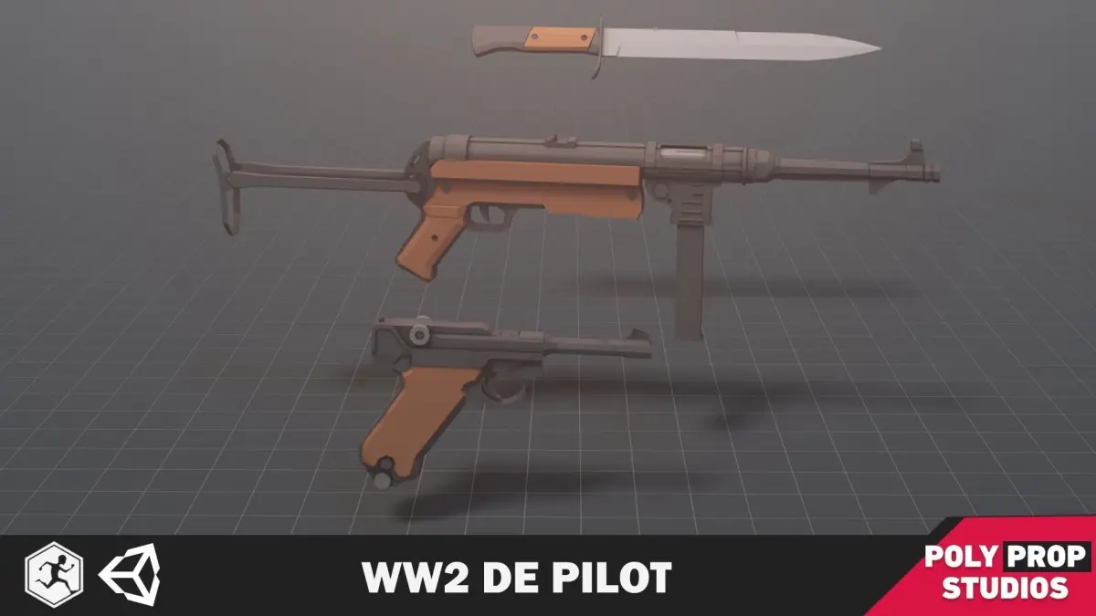 **WW2 DE Pilot- Messerschmitt - BF-109 Fighter- MP40MachineGun- LugerP08Pistol- Knife /Game Ready /Rig/ All Animation